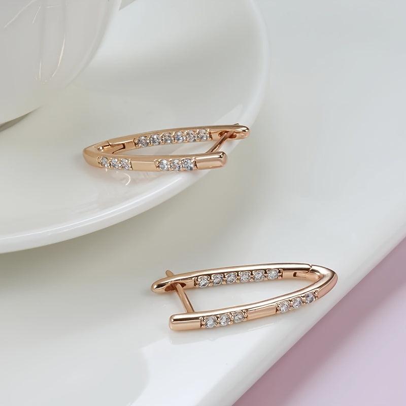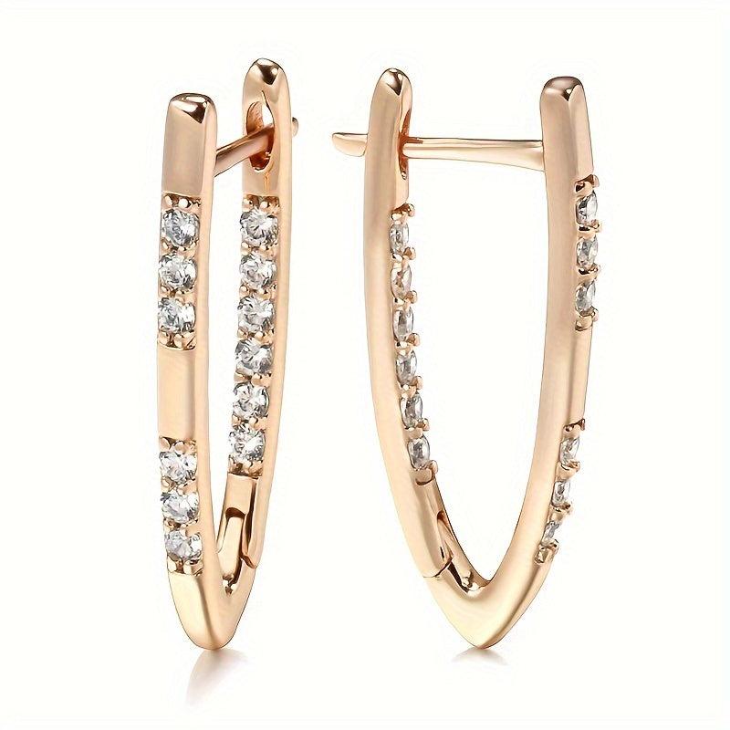 Add a touch of elegance to any outfit with these stunning V-shaped earrings. The champagne golden color is perfect for celebrating Christmas, Valentine's Day, or any holiday. These earrings are made with synthetic zirconia for a high-quality finish.