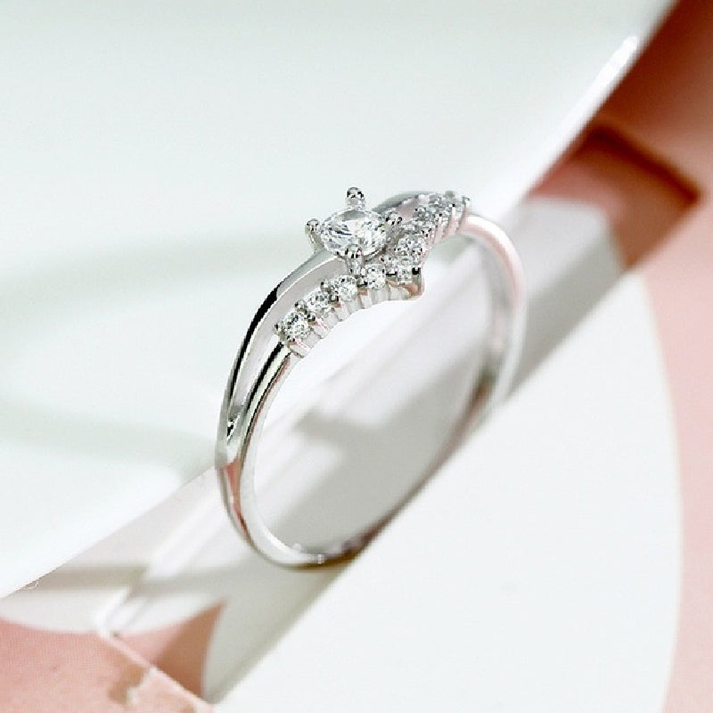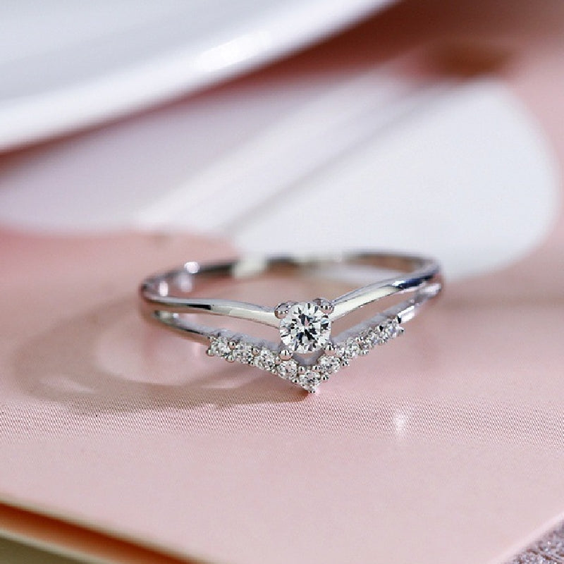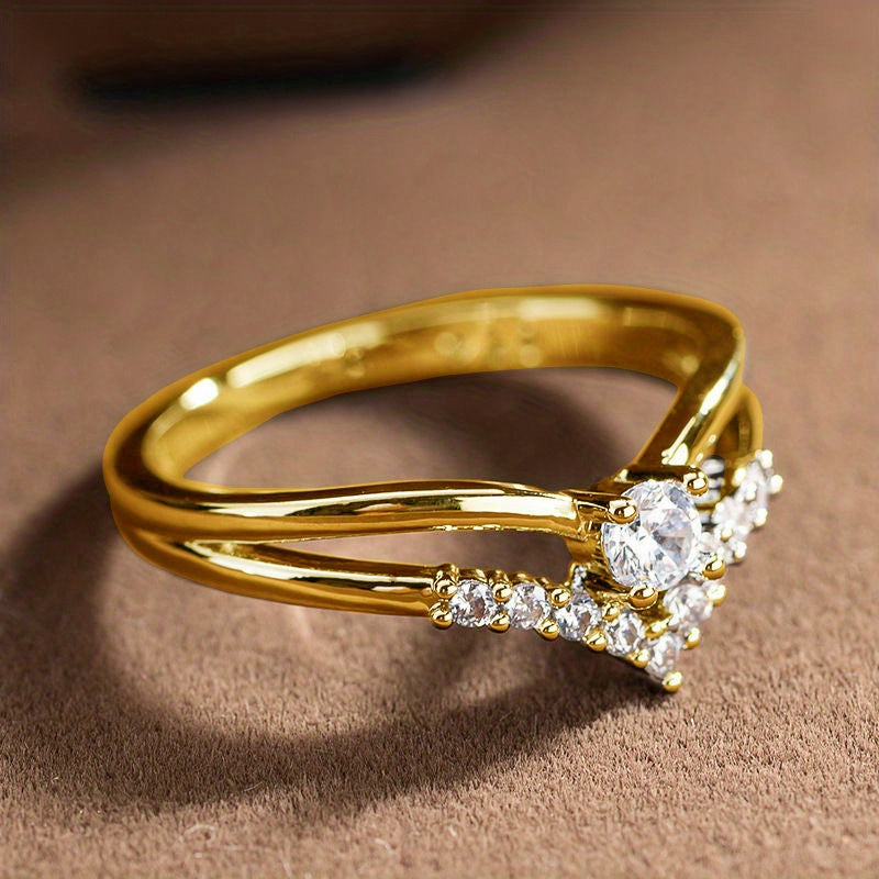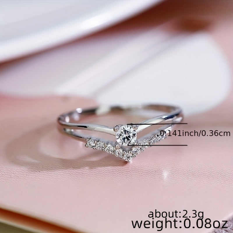 Add a touch of sparkle with this stunning V-shaped zirconia ring, perfect for proposals or anniversaries. A beautiful and elegant choice for your special someone.