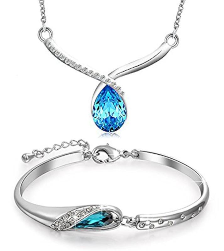 Surprise your loved one with this dazzling crystal combo pendant necklace and bangle bracelet set, perfect for Valentine's Day.