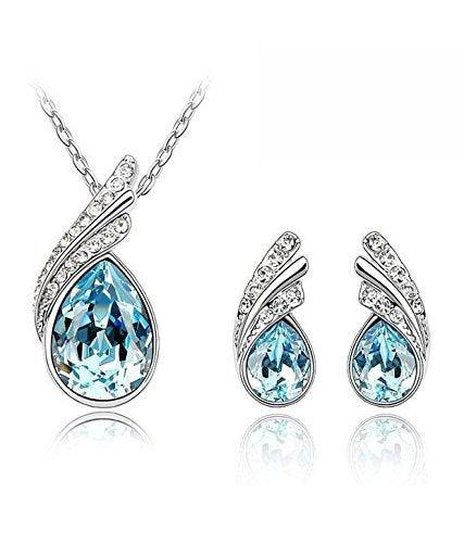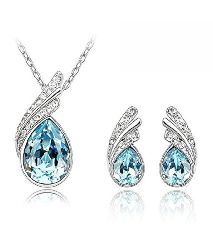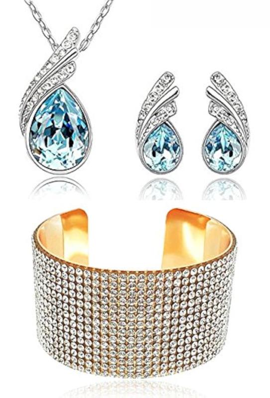 This stunning crystal combo includes a pendant necklace, bangle bracelet, and fancy earrings to add sparkle to your Valentine's Day look.