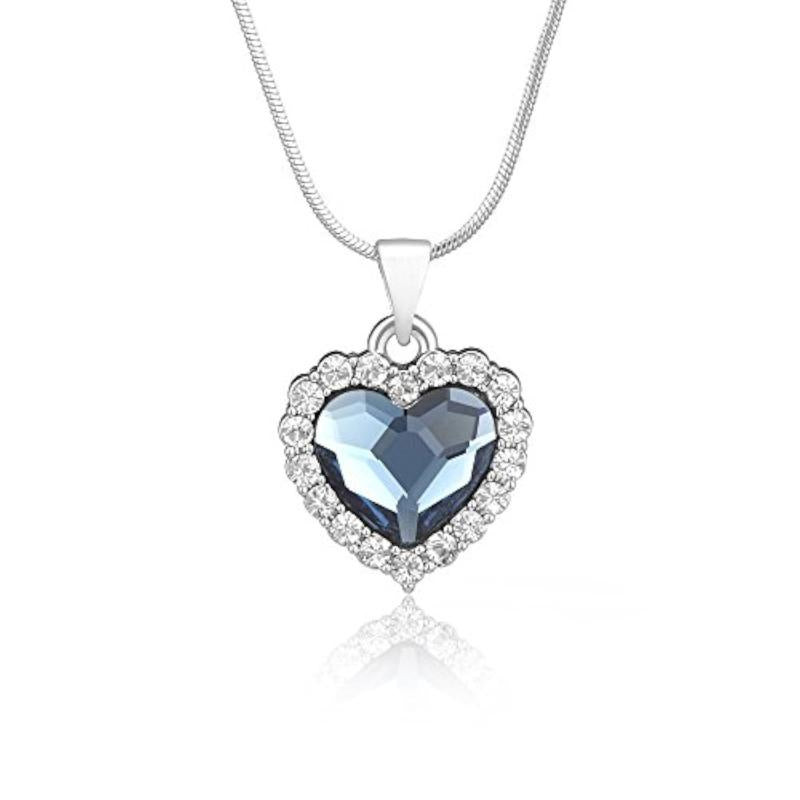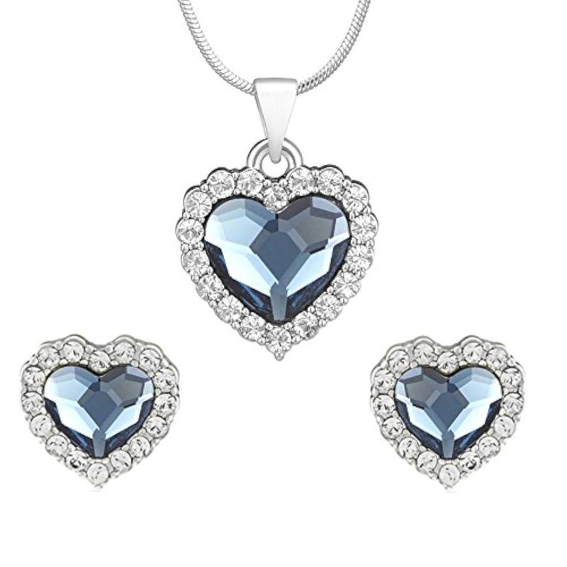 This beautiful pendant set features a Montana blue Titanic heart design made with Swarovski Elements. Perfect for adding a touch of elegance to any outfit.
