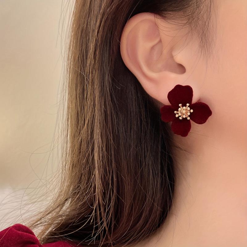 These stylish velvet flower earrings are perfect for daily wear or vacation. Made with 14K golden plated zinc alloy, they are versatile and chic.