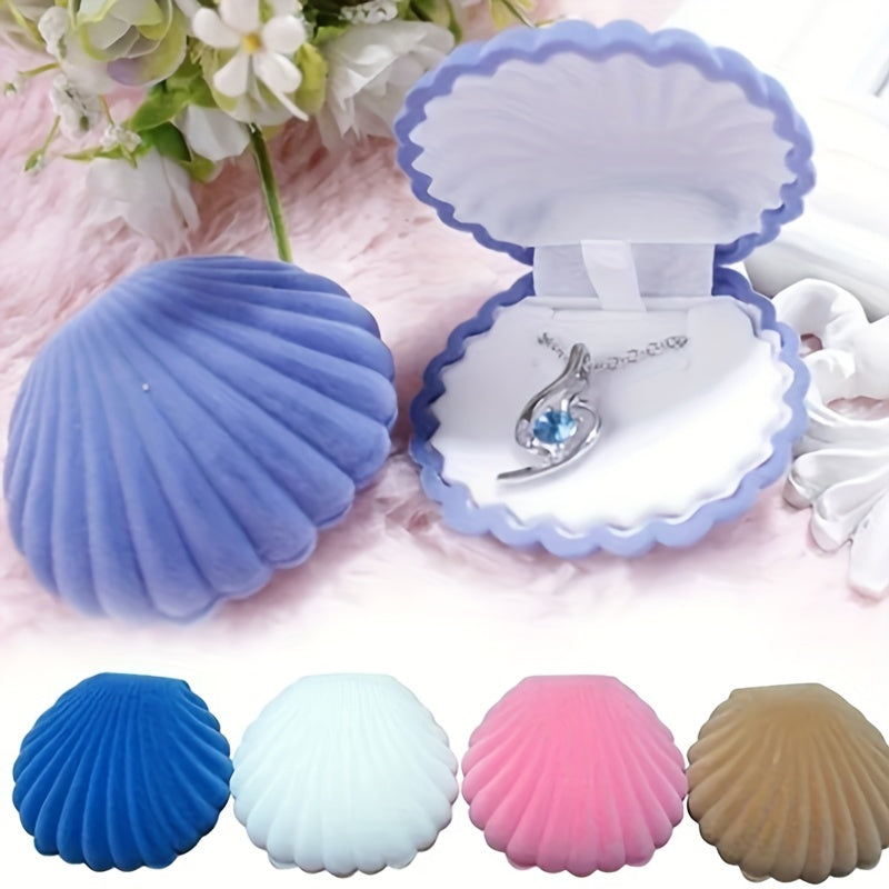 This elegant velvet shell shape display case is perfect for showcasing your jewelry pieces. Ideal for weddings and special events.