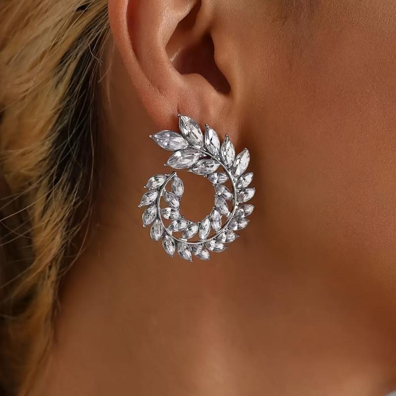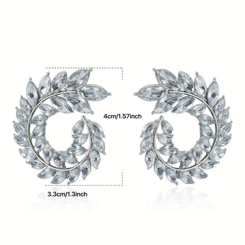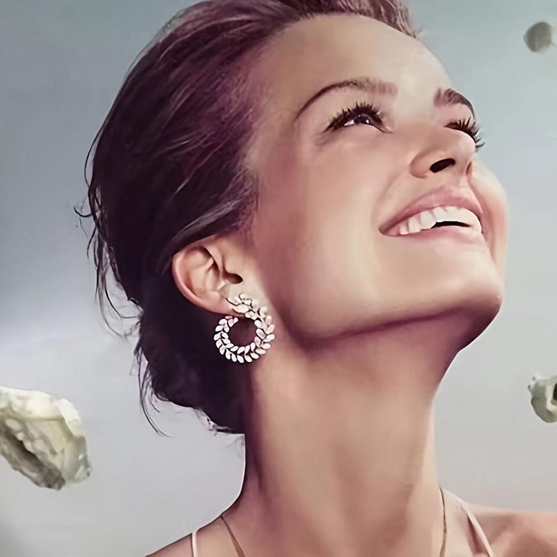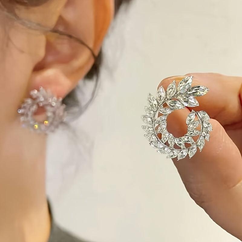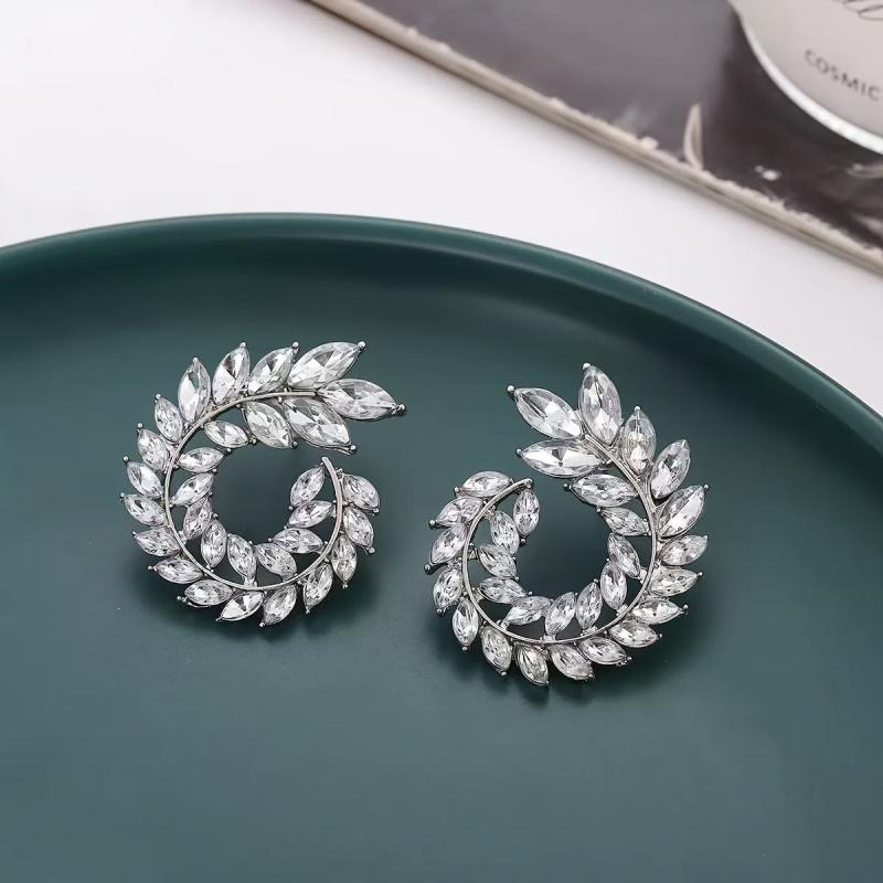Elegant pair of synthetic cubic zirconia earrings suitable for daily wear, parties, and weddings. The design features round and water drop shapes.