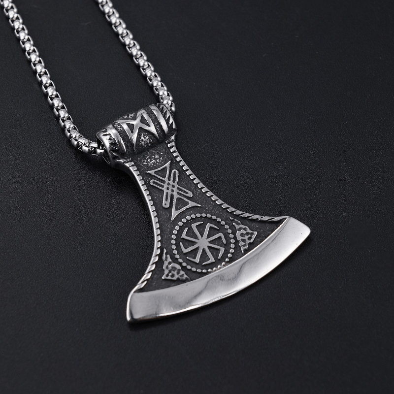 This Viking ax pendant necklace is a stylish and meaningful piece of jewelry suitable for men, couples, or women. Made of high-quality stainless steel, it makes a great gift.