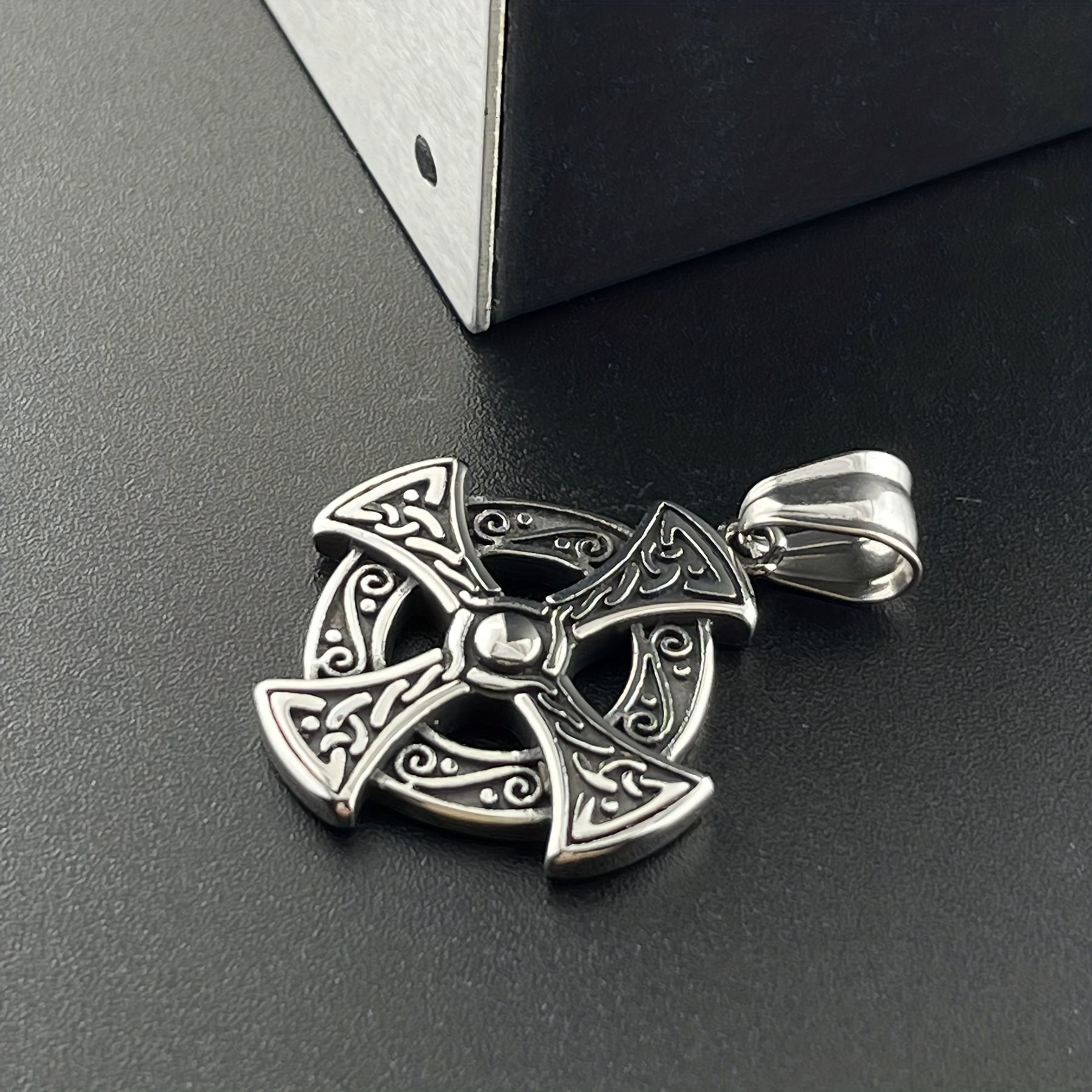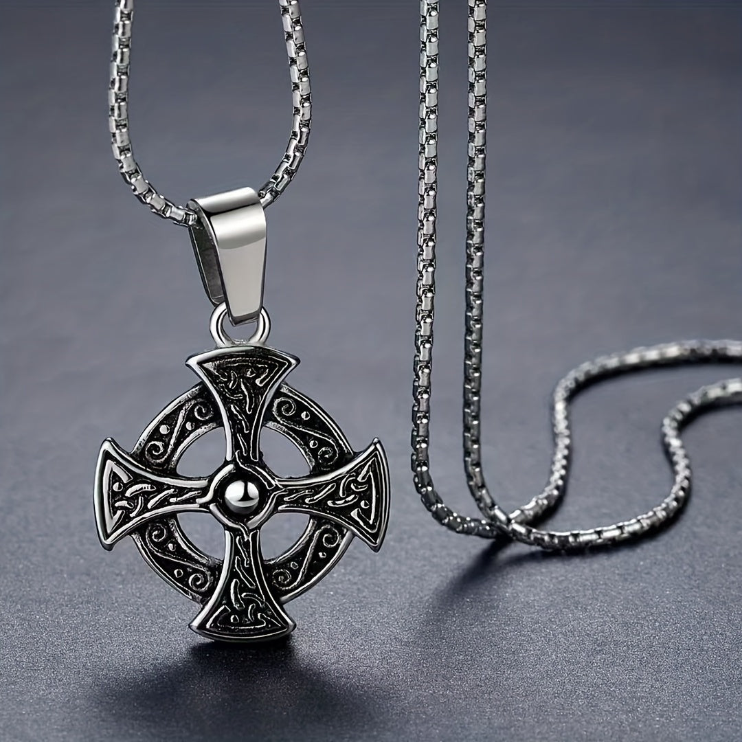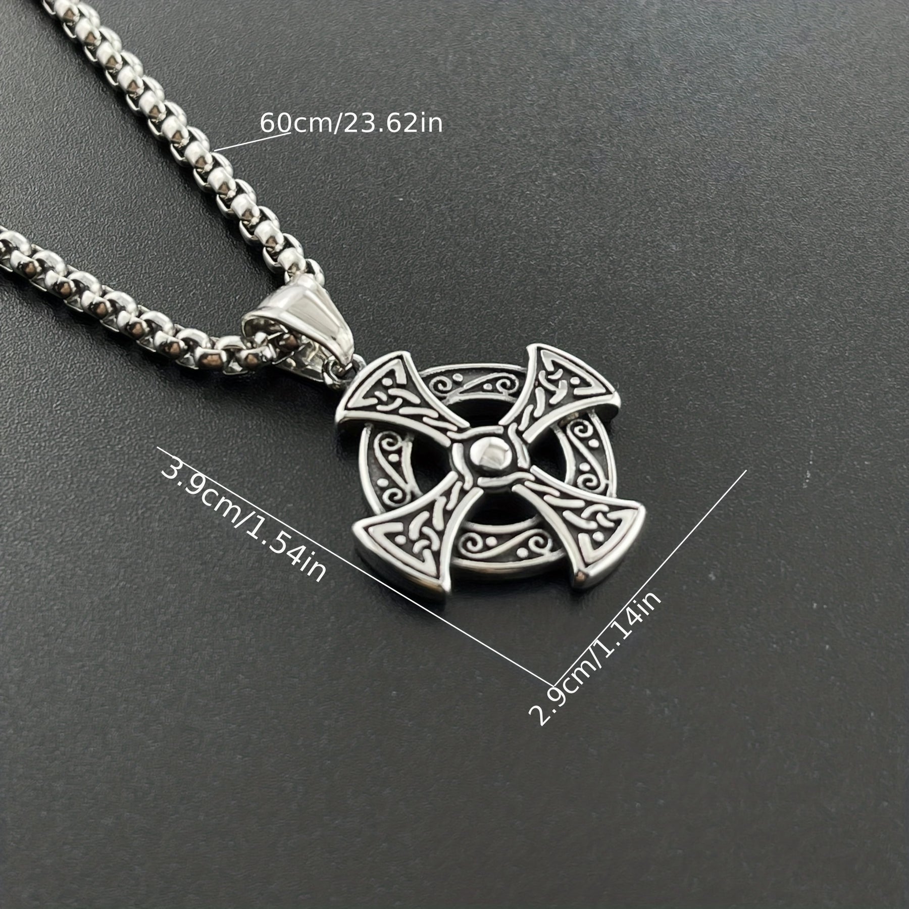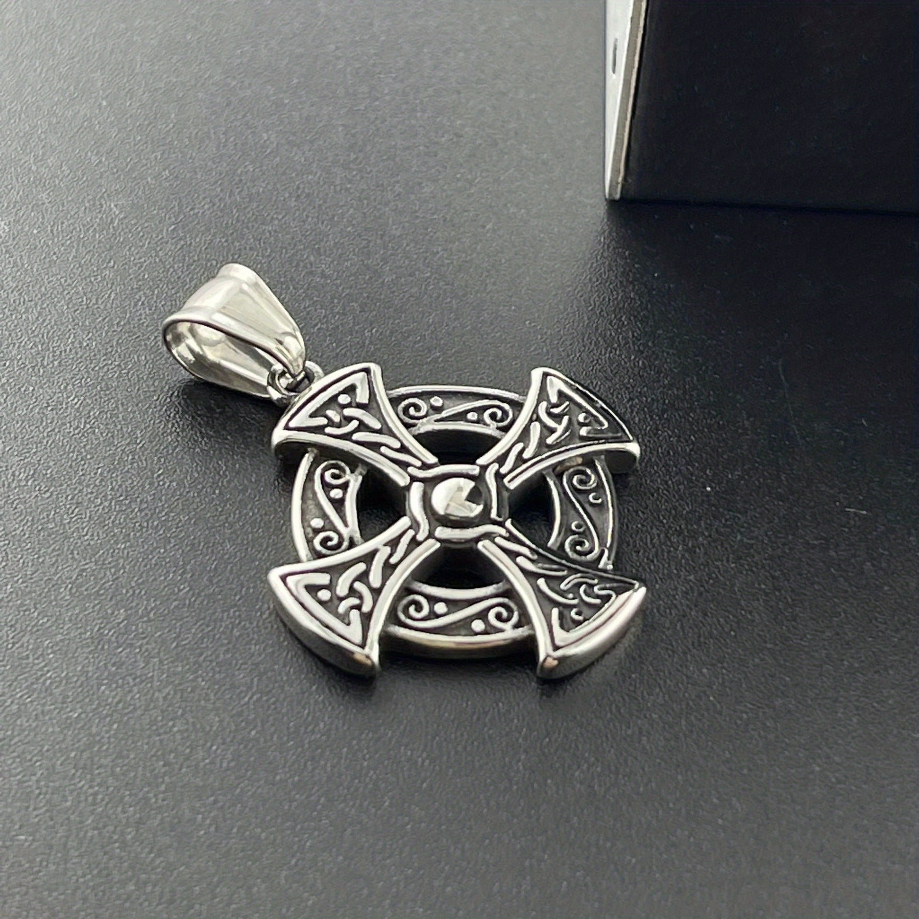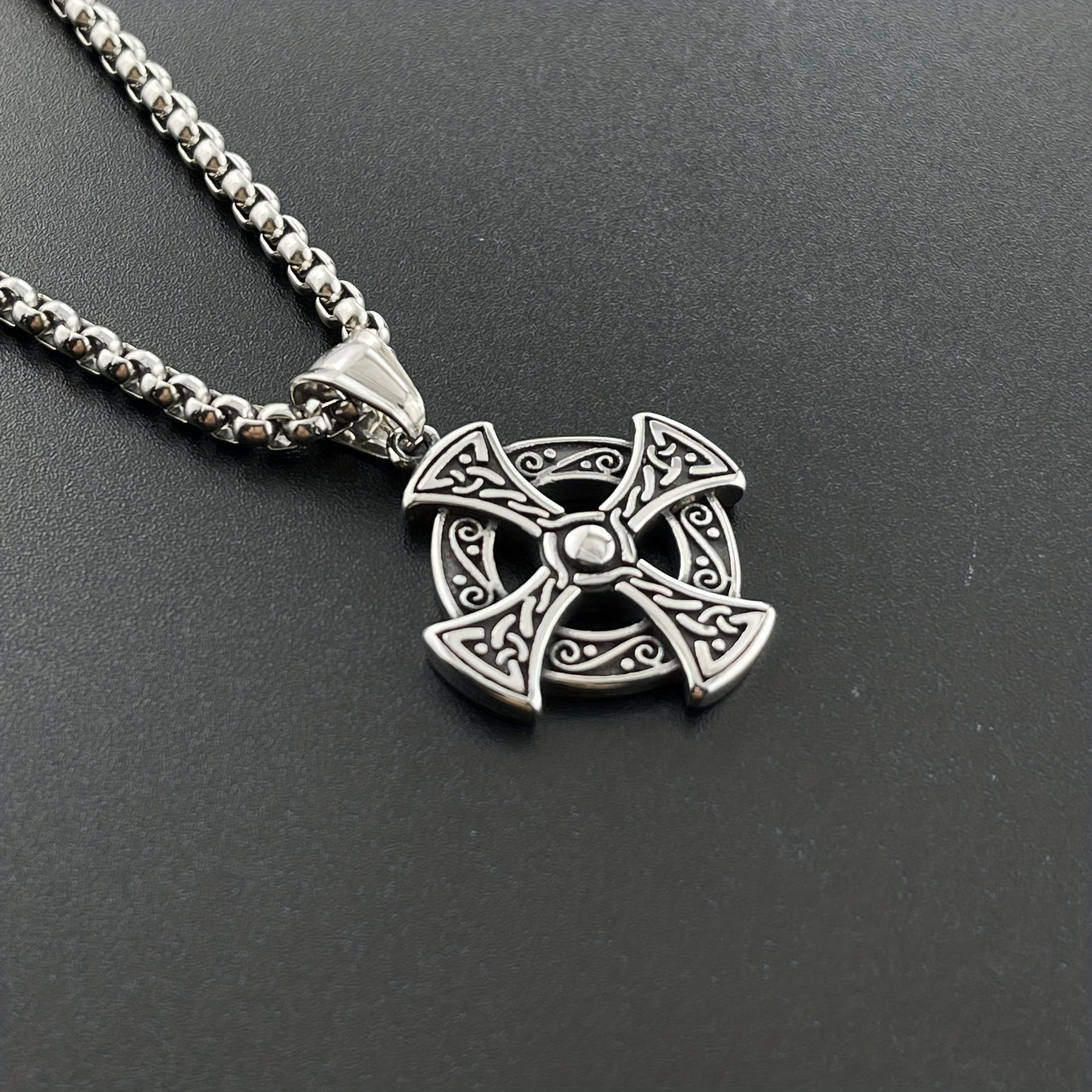 This Viking necklace features a Celtic knot cross design, made of stainless steel. It is a perfect amulet jewelry gift for men, couples, or women.