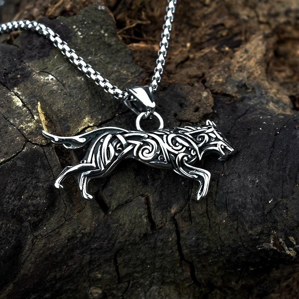 This Viking titanium steel wolf pendant hip hop necklace with square pearl chain is an ideal gift for both men and women. Made from high-quality materials, it exudes style and creativity.