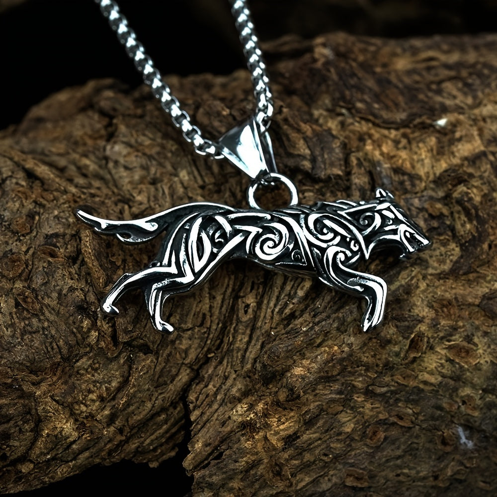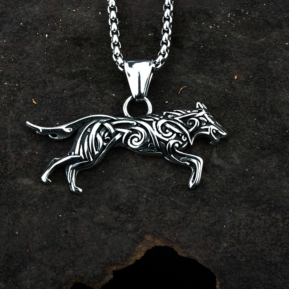 • Viking titanium steel wolf pendant hip hop necklace