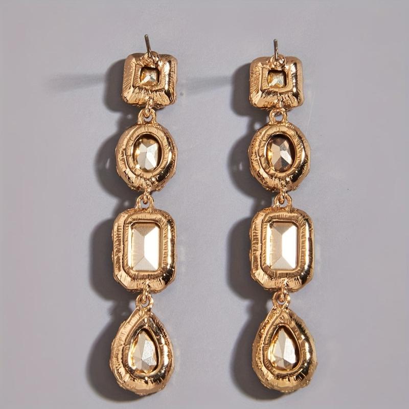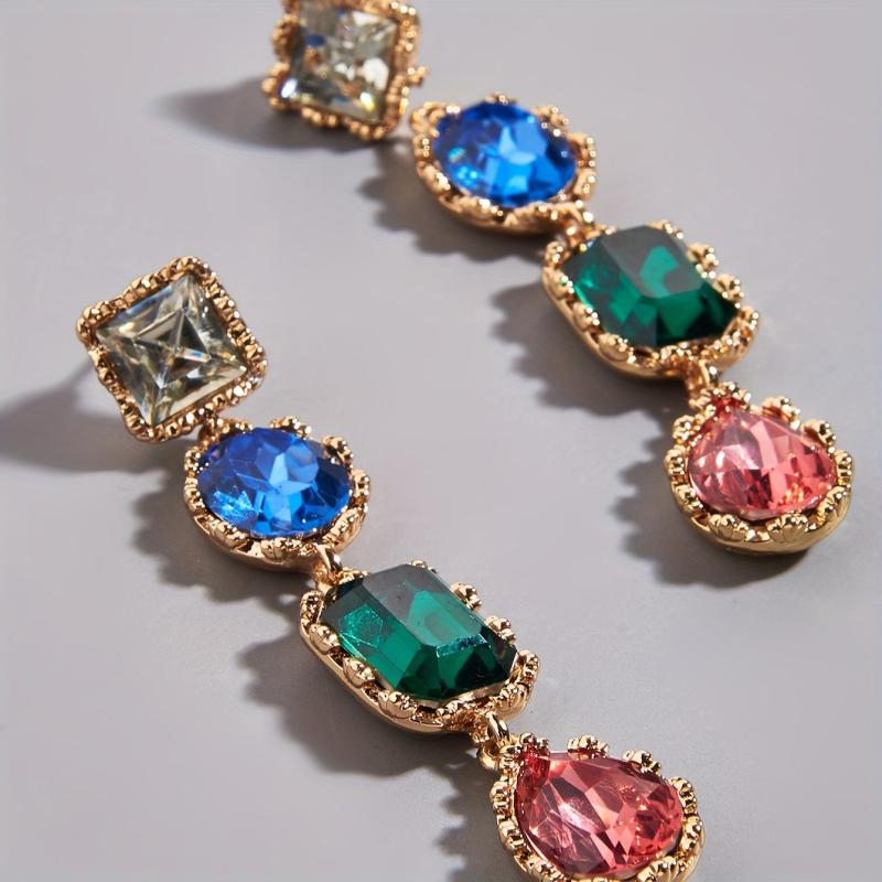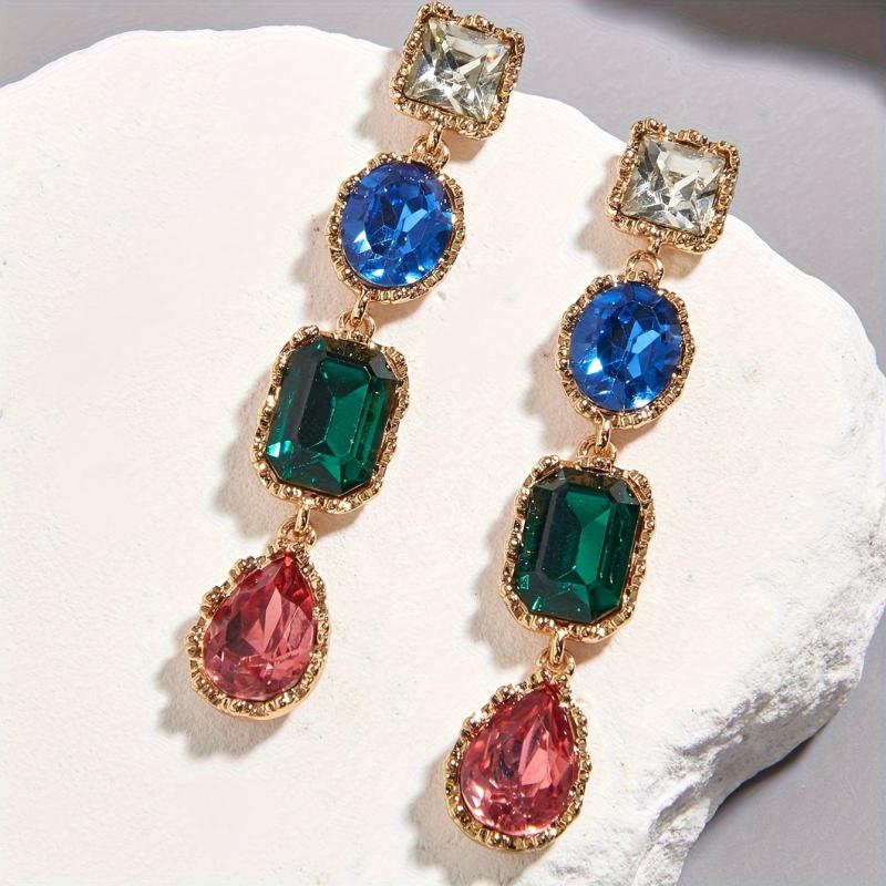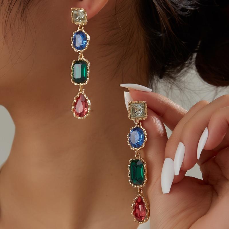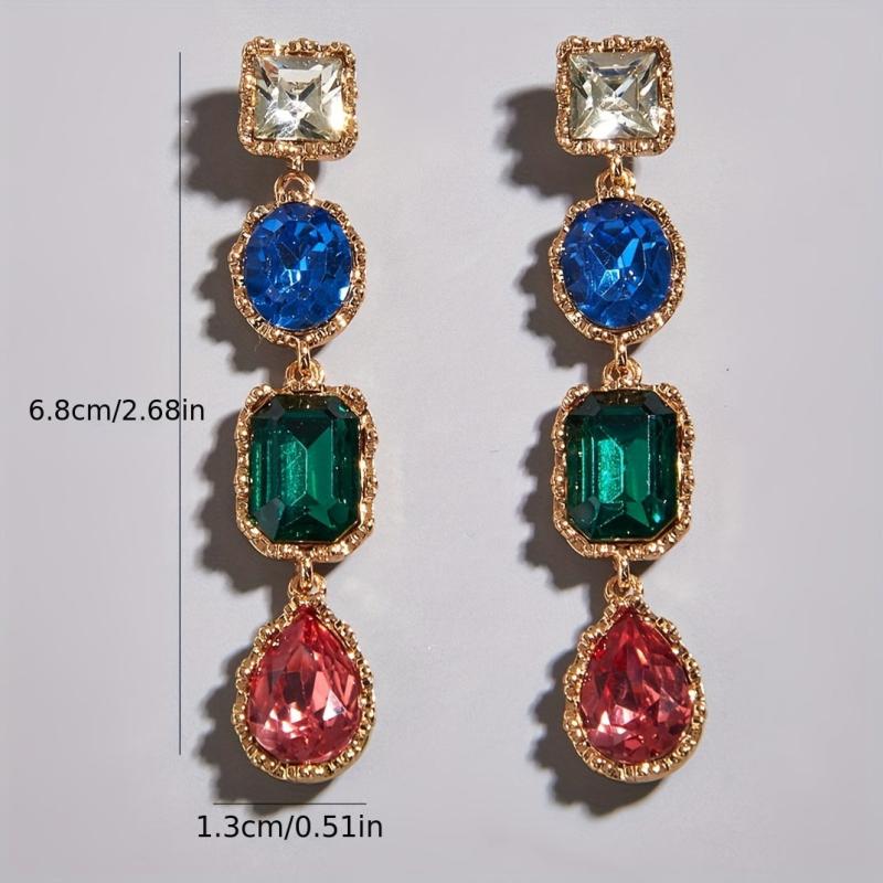 Elevate your style with these elegant dangle earrings featuring multicolor resin gemstones. The long tassel drop design is perfect for adding a touch of sophistication to any outfit.