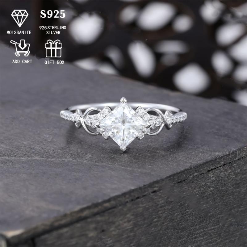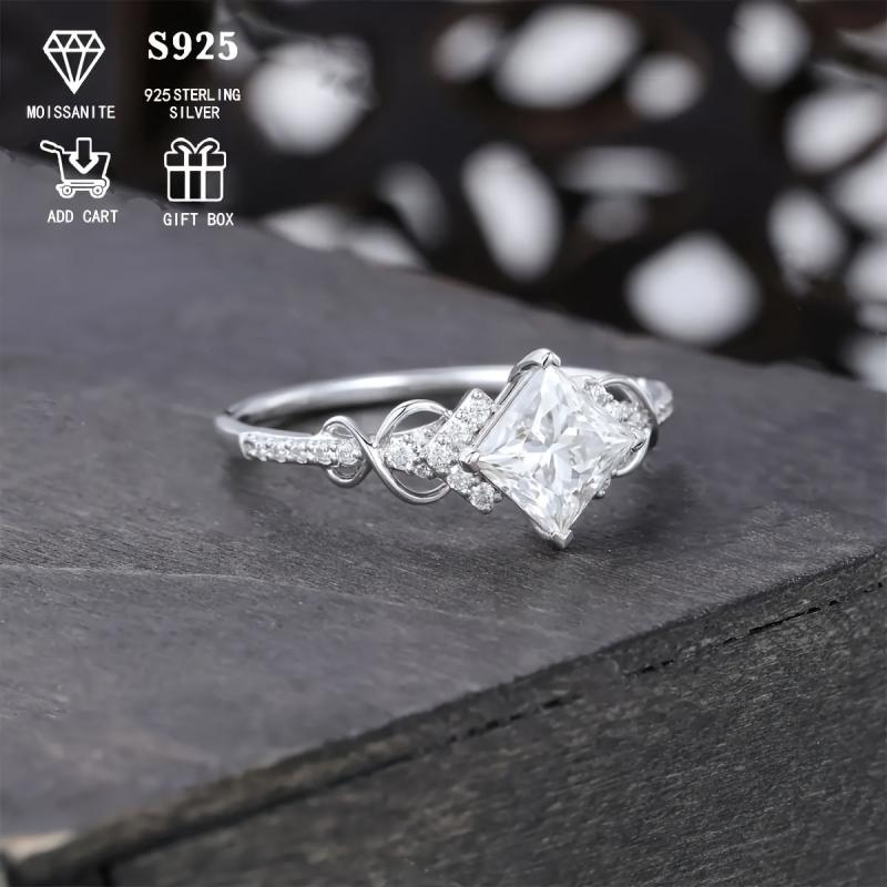 This stunning ring features a 1ct princess square moissanite set in S925 silver. Perfect for women and men as a promise ring.