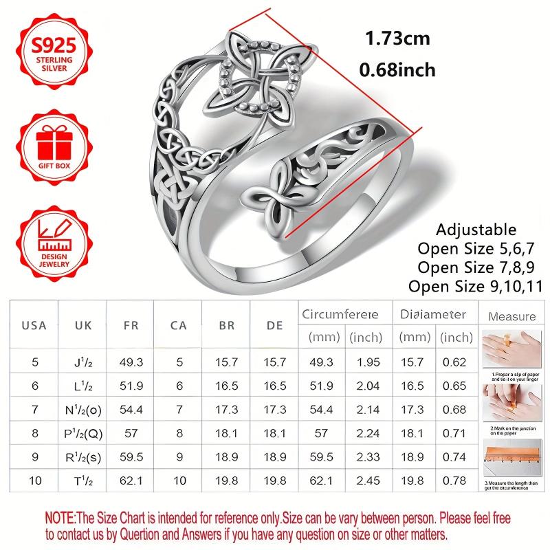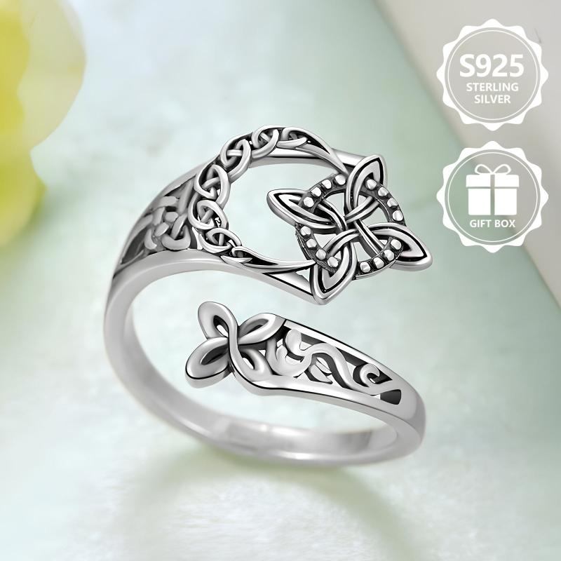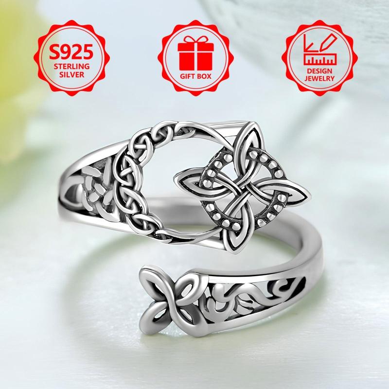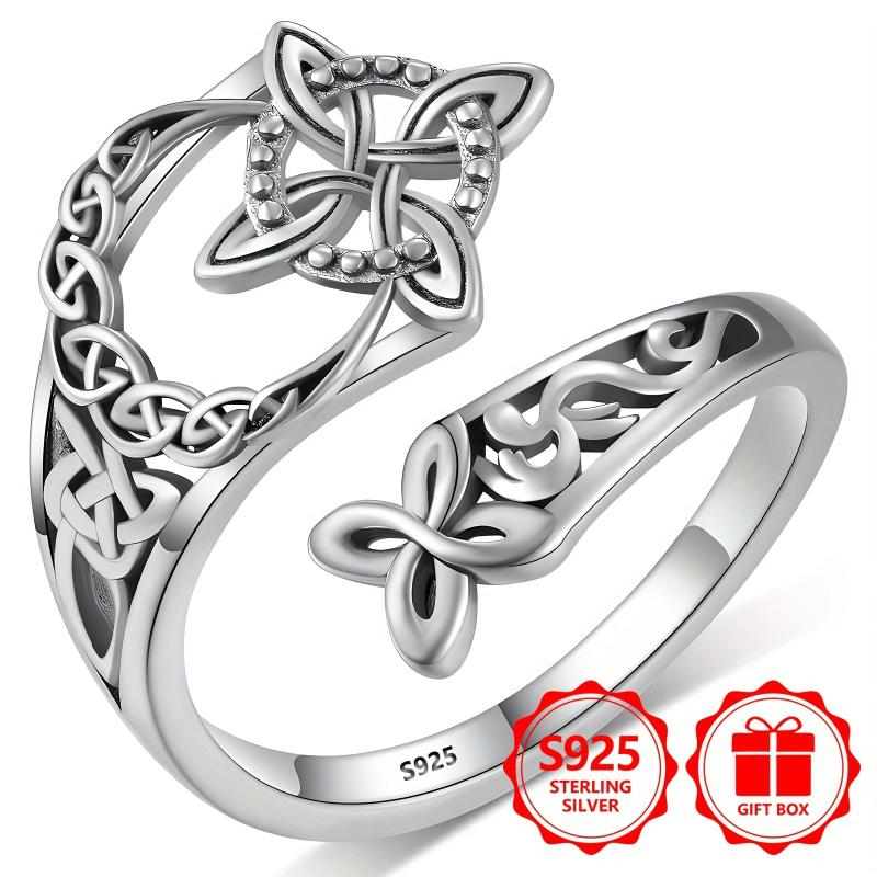This vintage 925 sterling silver open ring features a witch knot Celtic design, making it a perfect accessory for daily wear. It is adjustable to fit most finger sizes and would make a great gift for Halloween or a birthday.