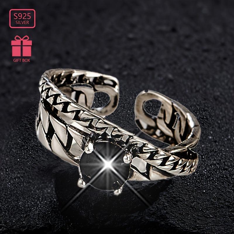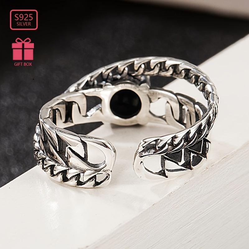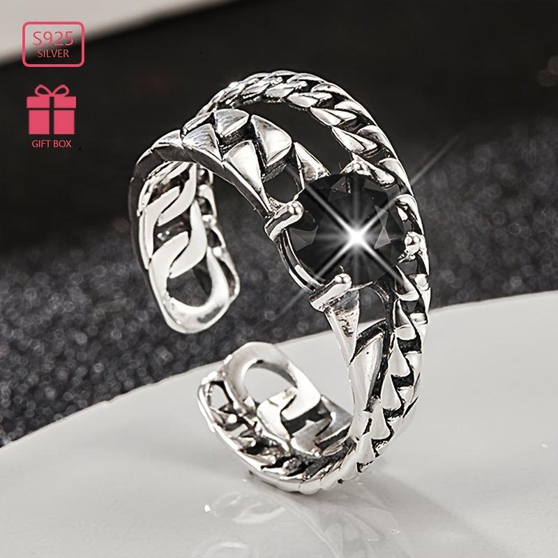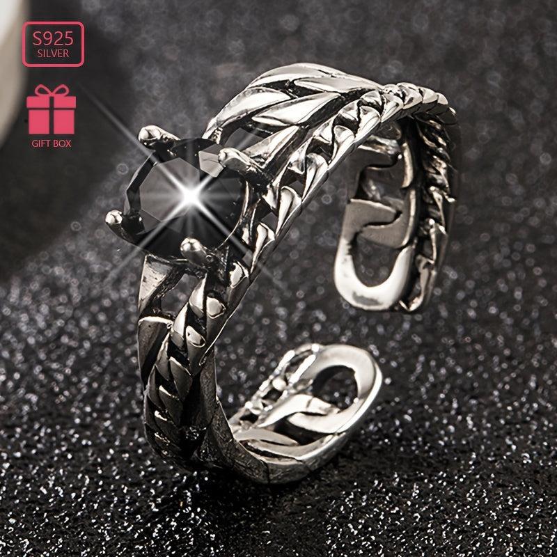This vintage style adjustable chain link band ring is made of 925 sterling silver with zirconia accents. It is perfect for daily wear and as a gift for someone special.