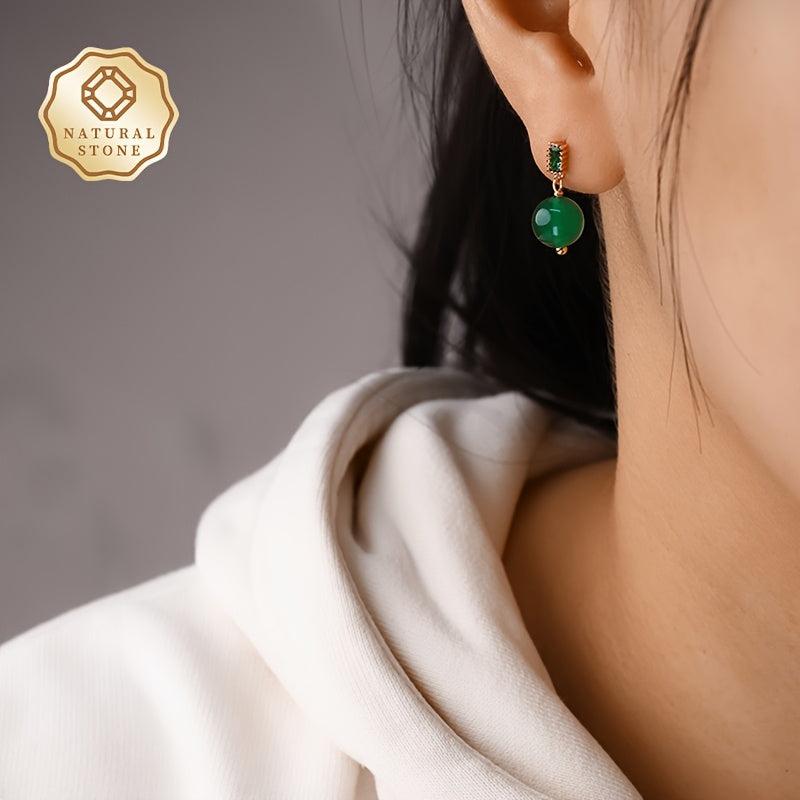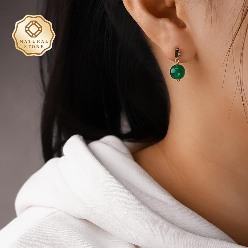 Add a touch of vintage elegance with these agate drop earrings. Made of 925 sterling silver with synthetic zirconia stones, perfect for daily wear or as a gift.