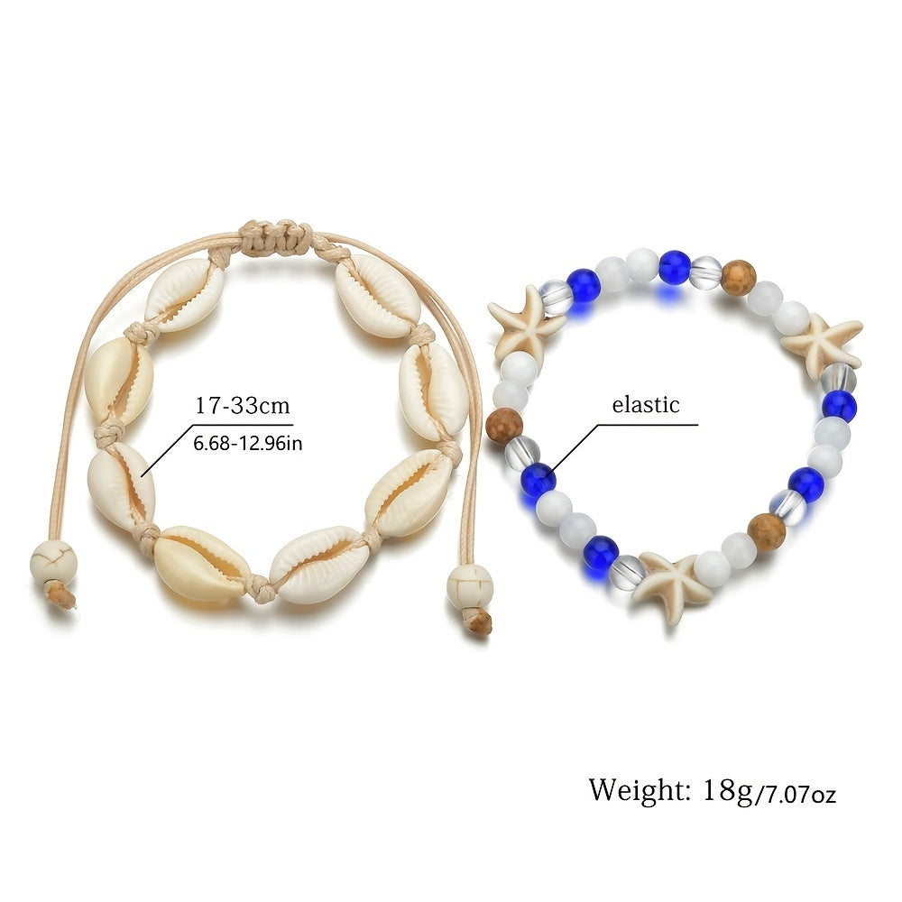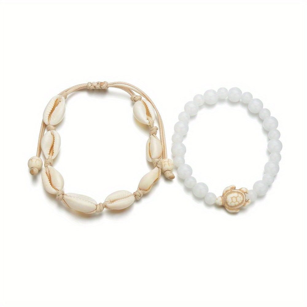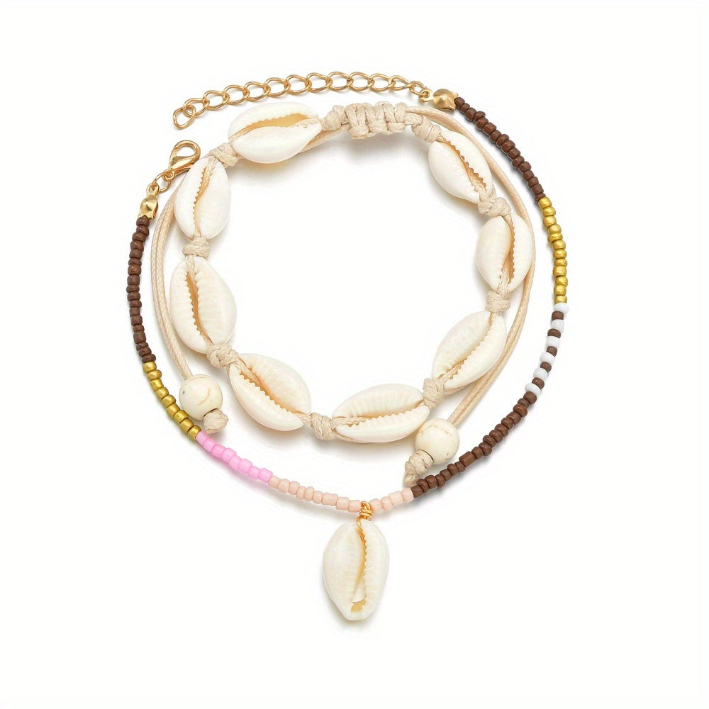 Add a touch of retro charm to your summer look with this set of 2 beaded shell anklets. Perfect for beach outings and casual wear.