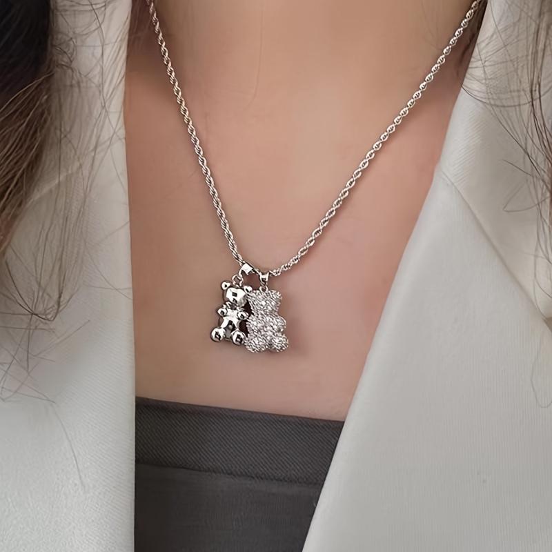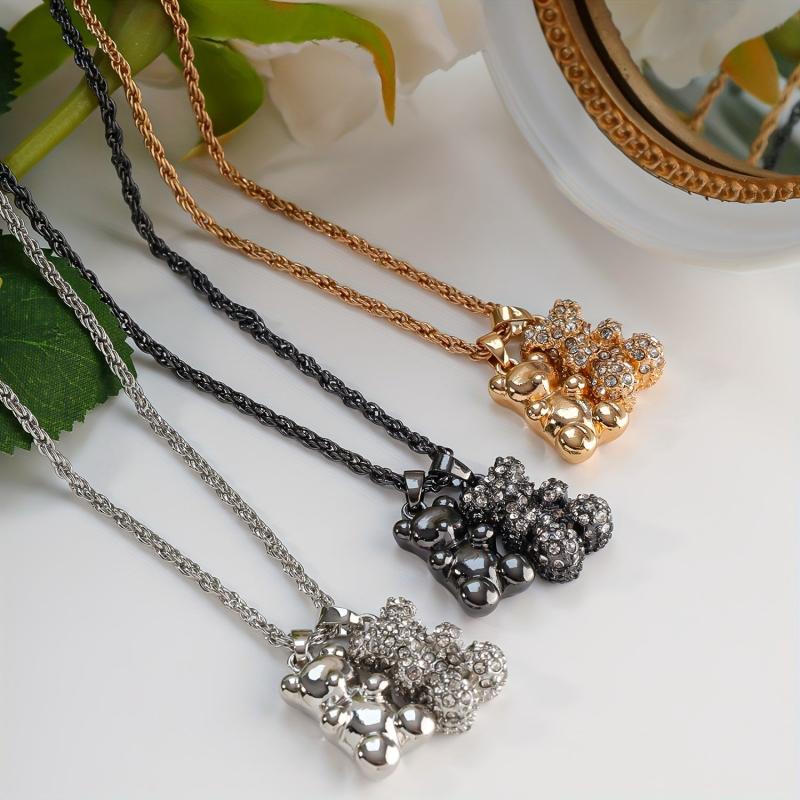 Elegant bear pendant necklace featuring artificial crystal embellishments. Perfect for daily wear or special occasions.