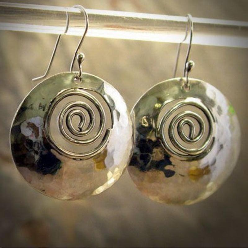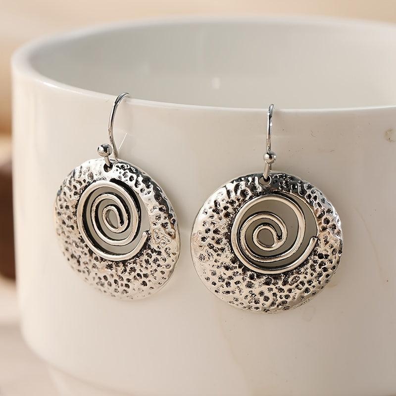 These vintage bohemian copper earrings feature artisan-carved sparkling stones with a golden tone spiral. They are perfect for daily wear and travel parties, making them an ideal gift for any occasion.