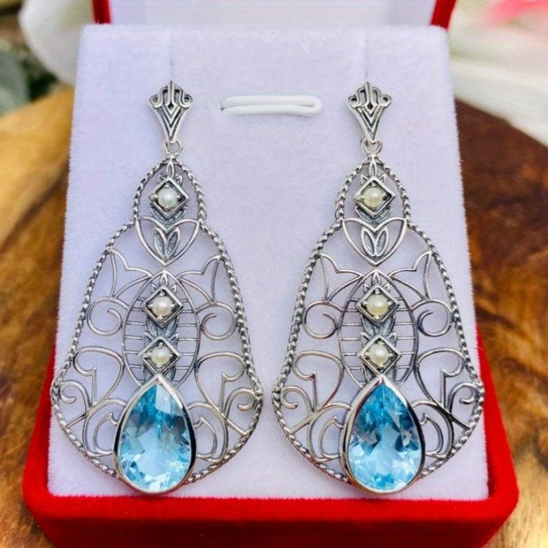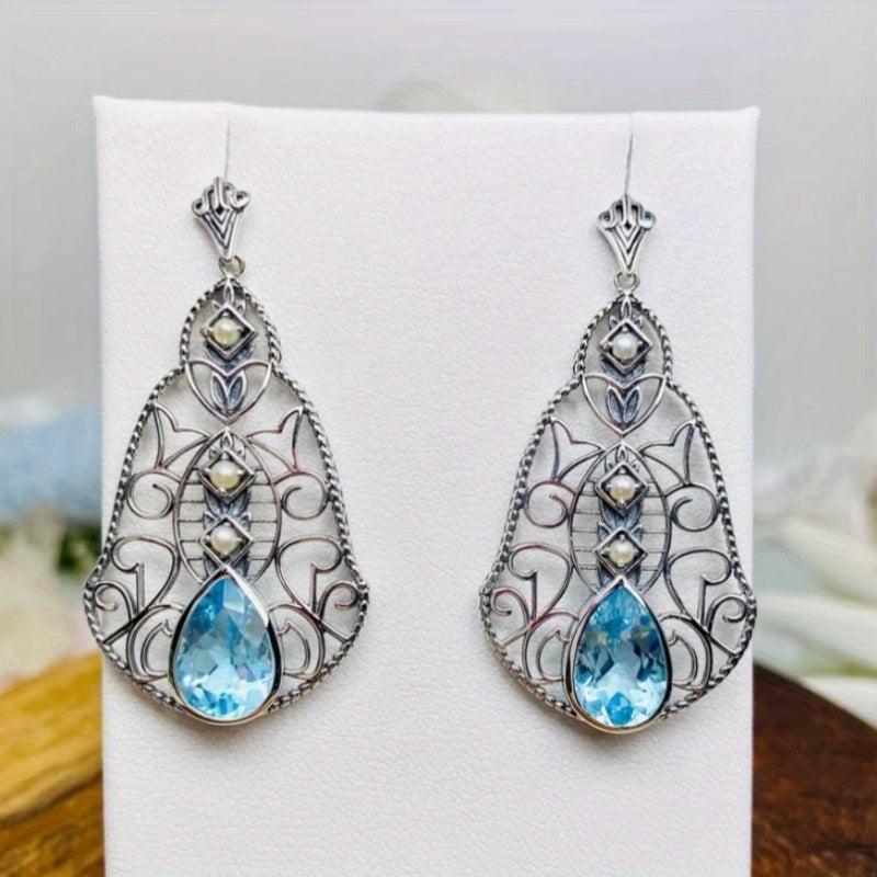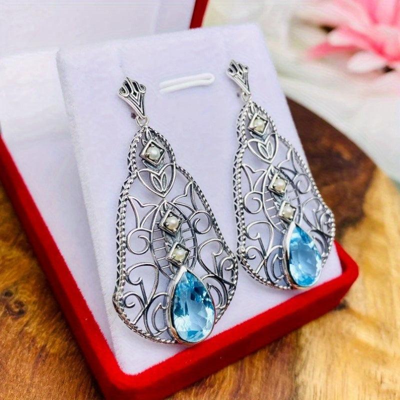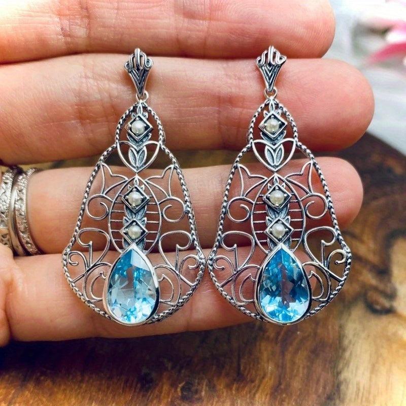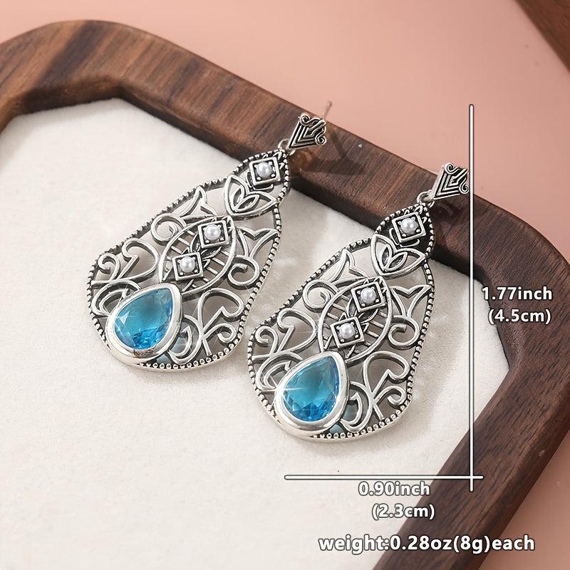 These vintage Bohemian copper earrings feature intricate hollow dangle design with zirconia inlay. Perfect holiday gift for Christmas or everyday wear.