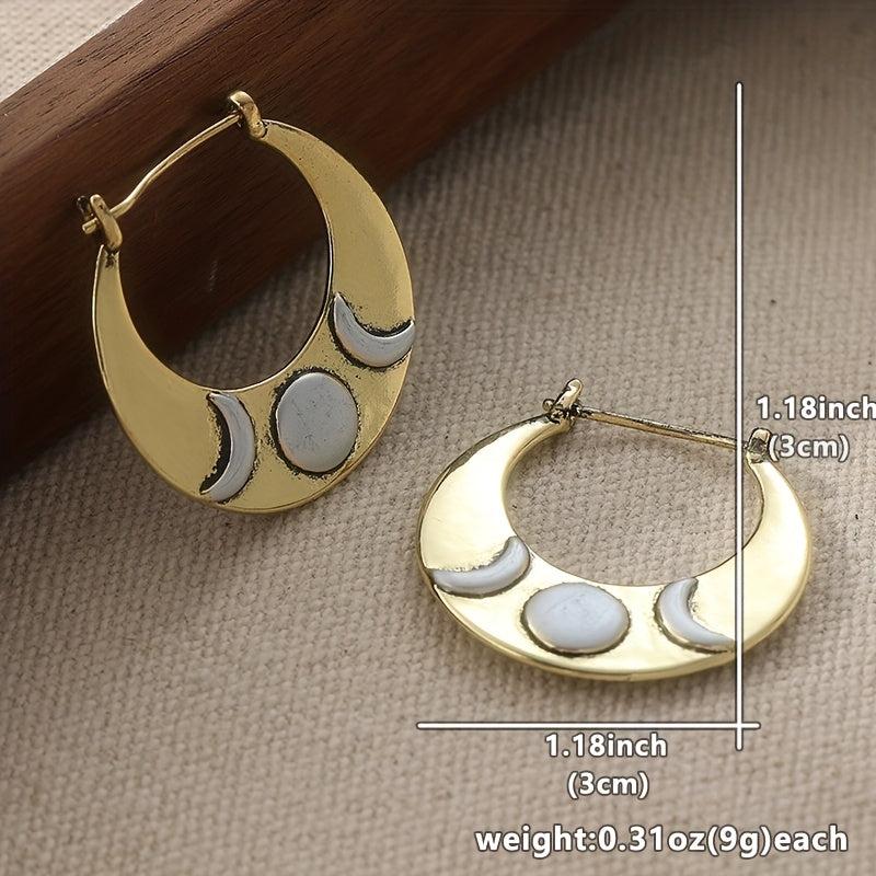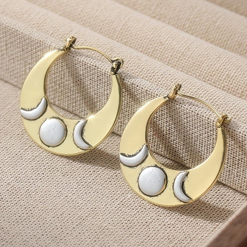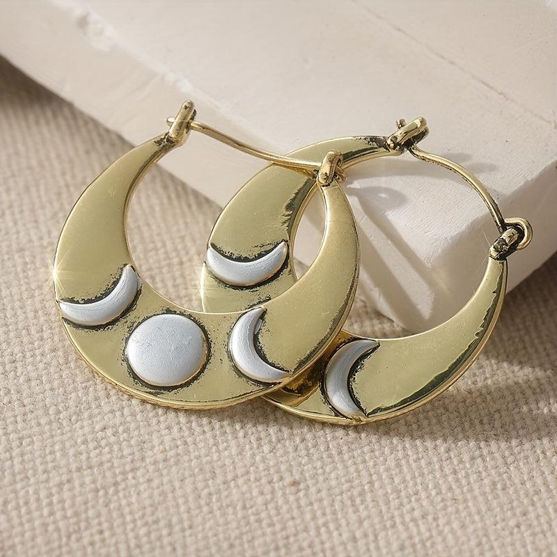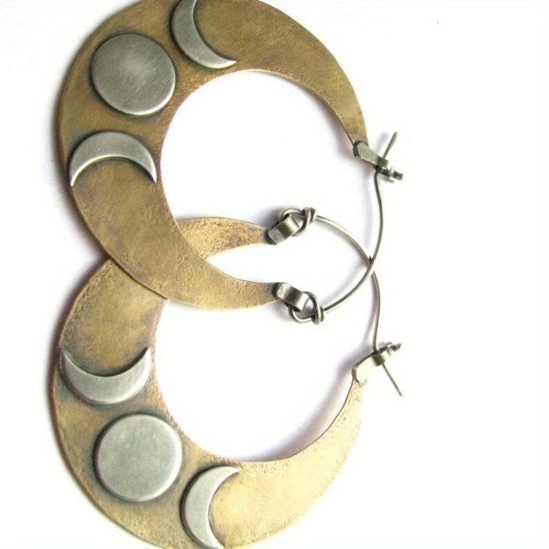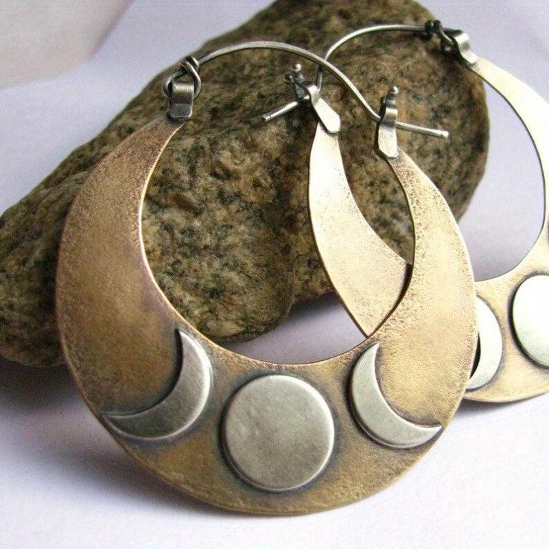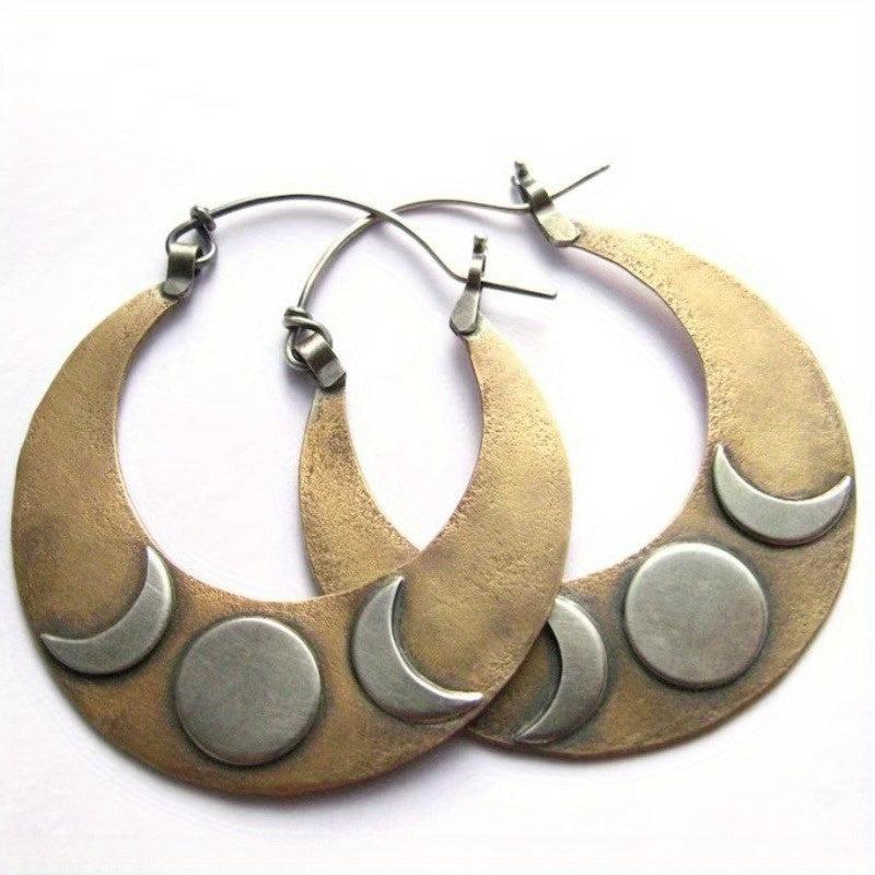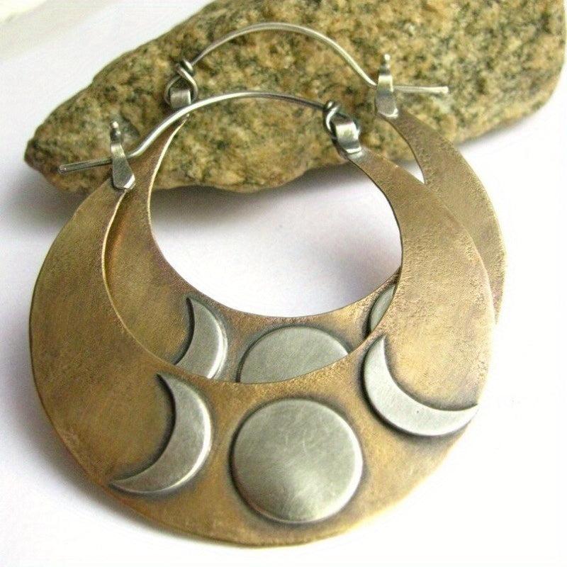 These large hoop earrings feature a triple goddess design, perfect for daily wear and Christmas celebrations. Crafted from artisan metals, these earrings are a unique addition to your jewelry collection.