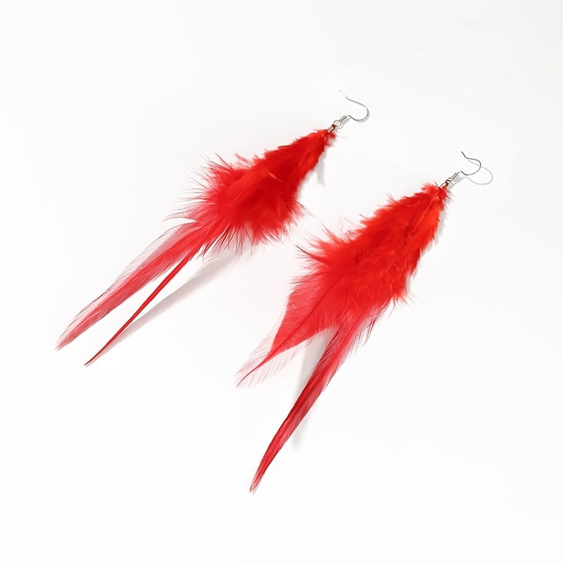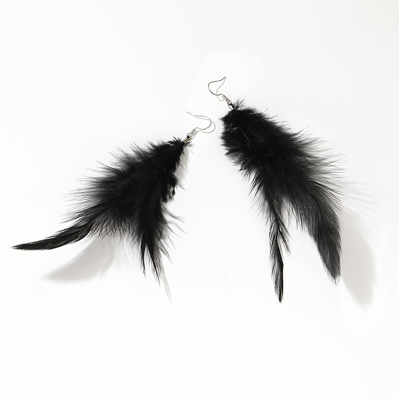 Add a touch of boho chic to your style with these vintage feather tassel earrings. Designed to dangle elegantly, these earrings are the perfect accessory for any outfit.