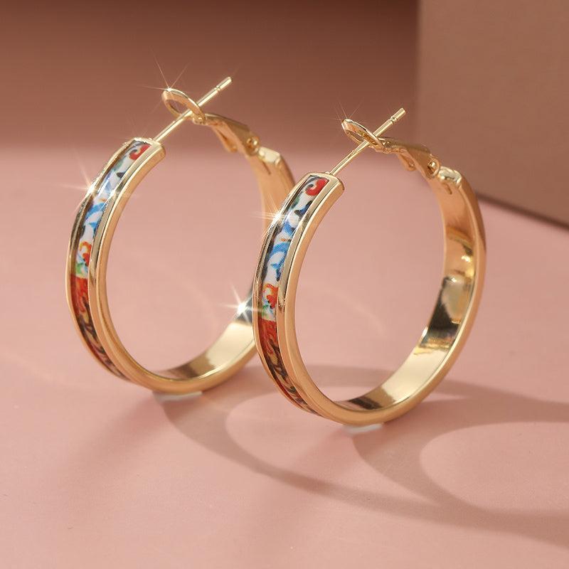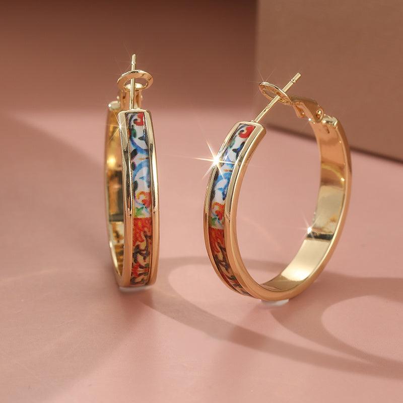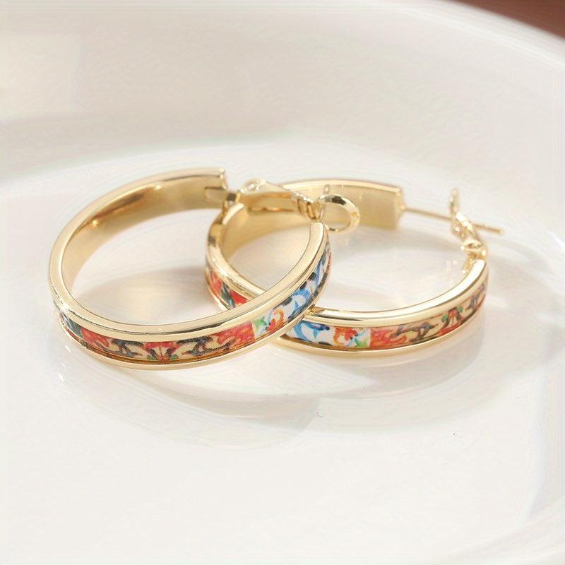 These stunning golden hoop earrings are perfect for weddings, parties, or everyday wear. They feature an ethnic print design and are sure to make a statement.