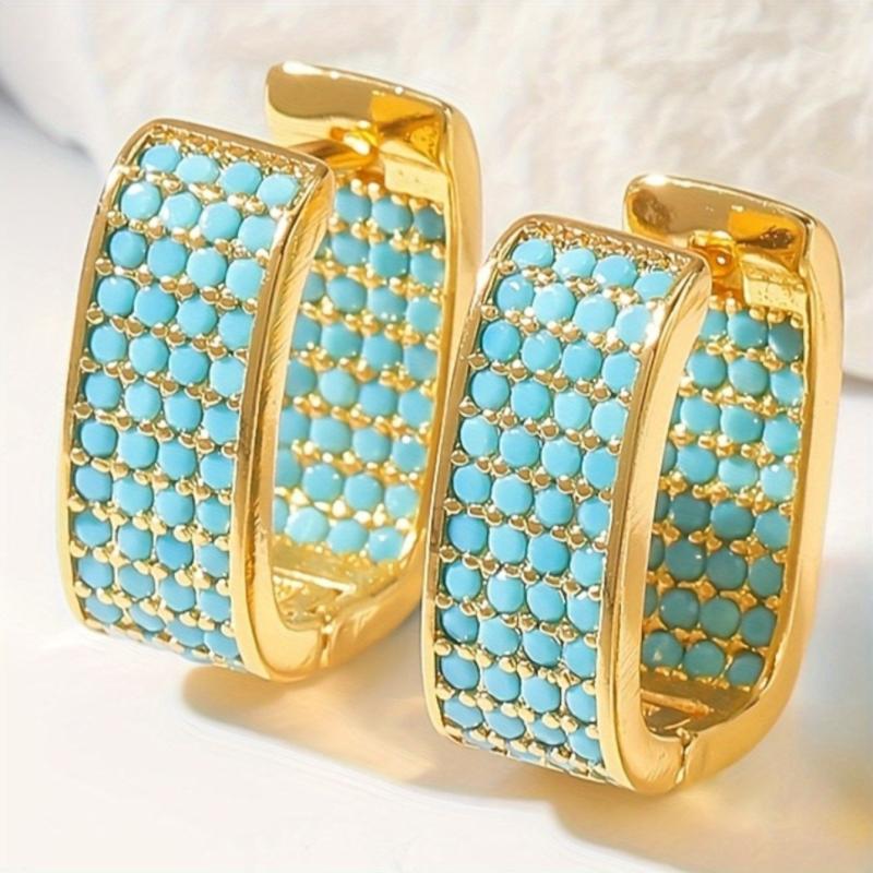 Vintage Bohemian Golden Earrings with Synthetic Turquoise - Casual & Gift