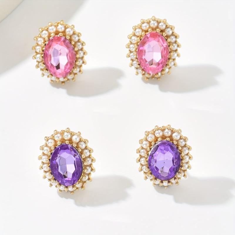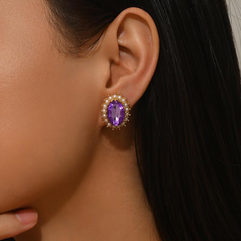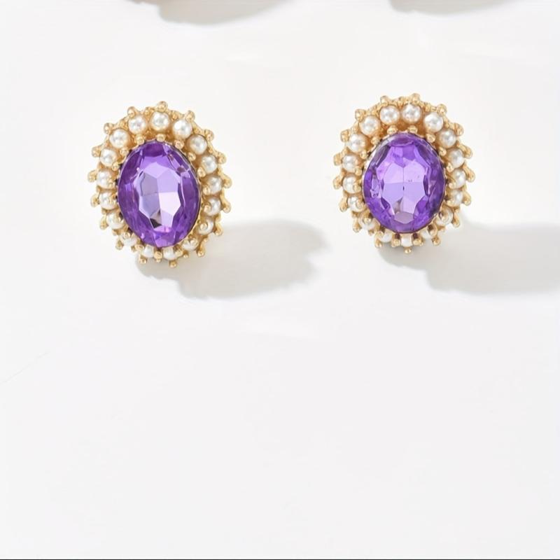 Elegant vintage style earrings with Bohemian and rhinestone design, featuring purple gemstone accents. Perfect for daily wear and parties year-round.