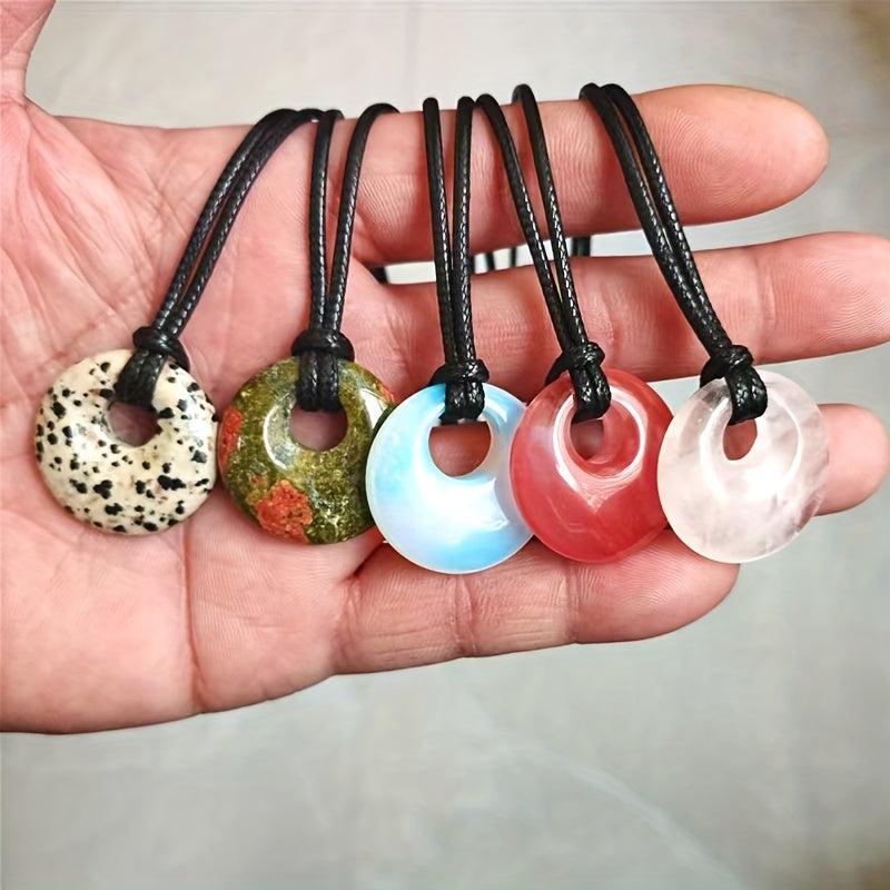 Get a unique and stylish look with this vintage bohemian natural stone pendant necklace. It's perfect for daily wear or special occasions like holidays, Christmas, or carnivals. Makes a great gift!