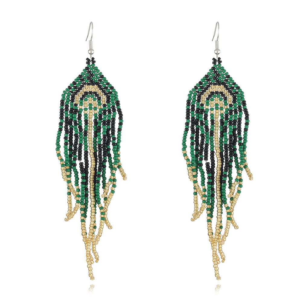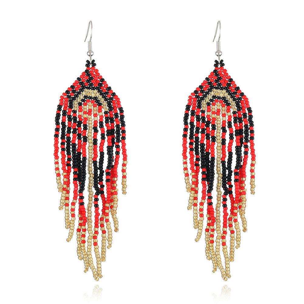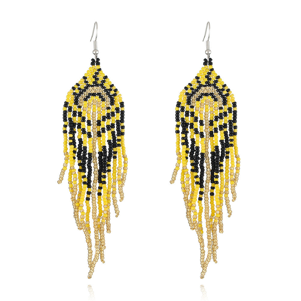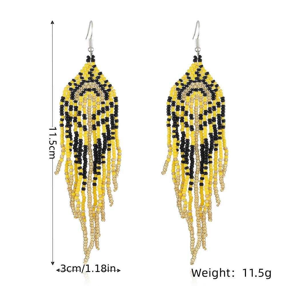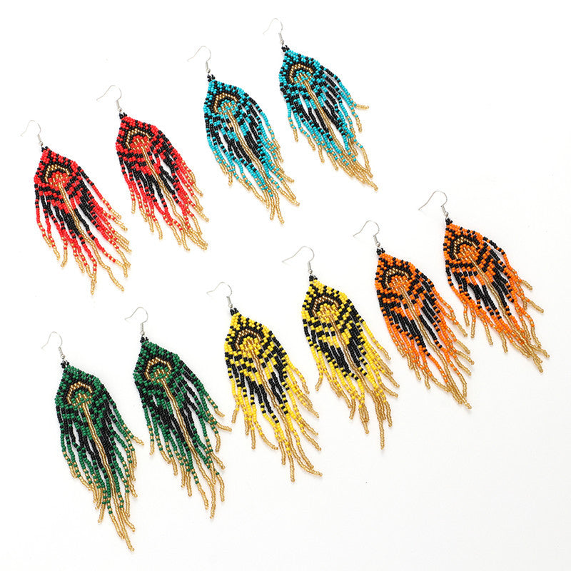 Add a touch of boho style to your outfit with these vintage tassel earrings. Hand woven design for a unique look.