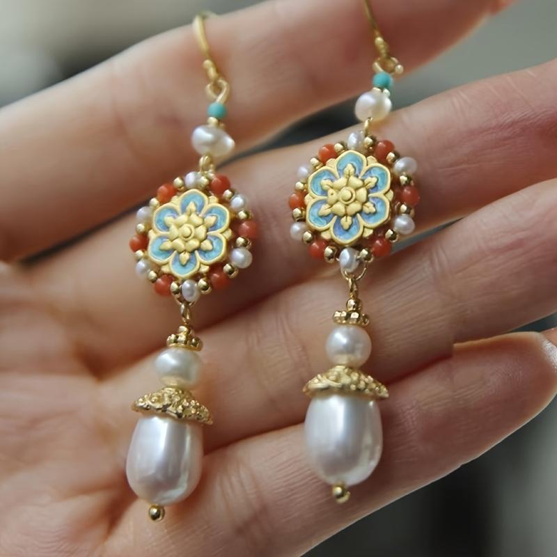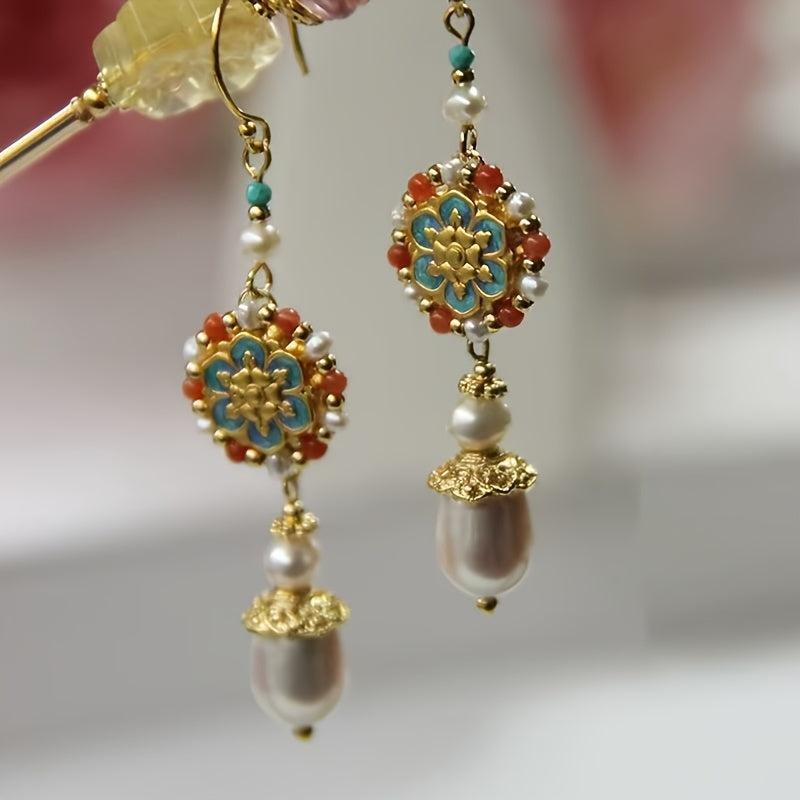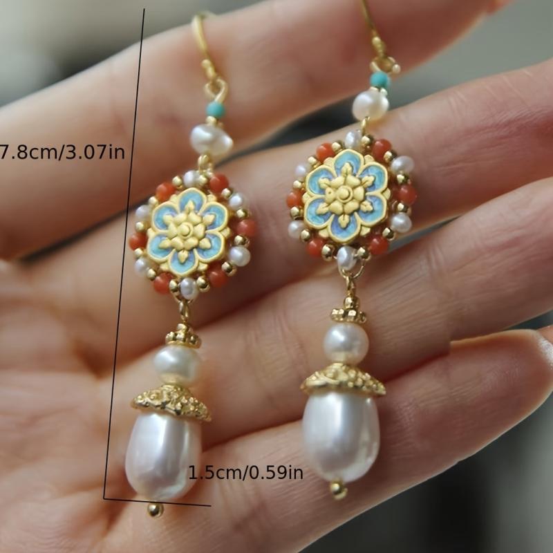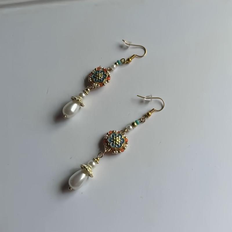 Elevate your style with these vintage boho drop earrings featuring faux pearl and colorful beaded accents. The versatile design makes them perfect for daily wear or gifting to a loved one.