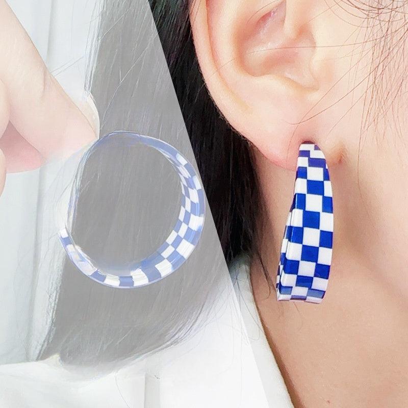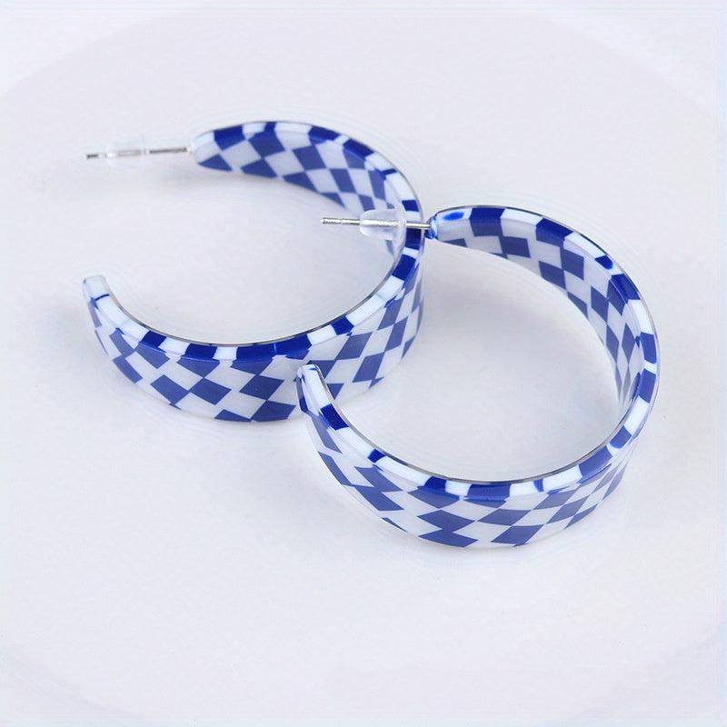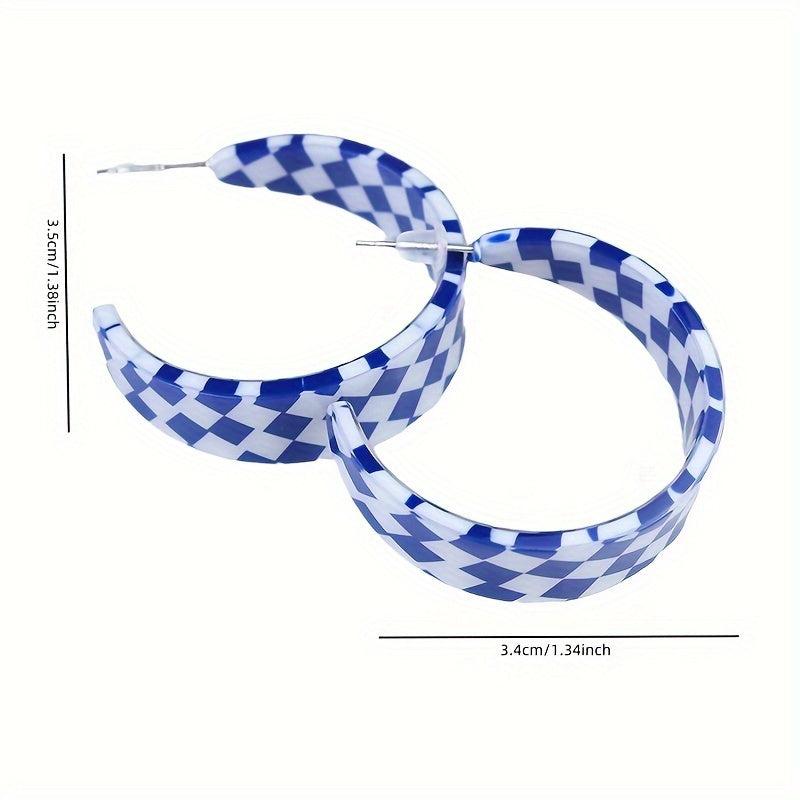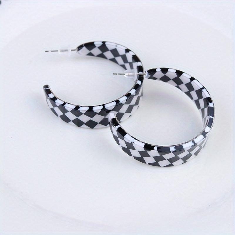 These vintage boho style hoop earrings feature a checkerboard pattern with C-shape design. Made with stainless steel posts and acrylic material. Perfect for everyday wear or to add a touch of glam to your holiday outfit.