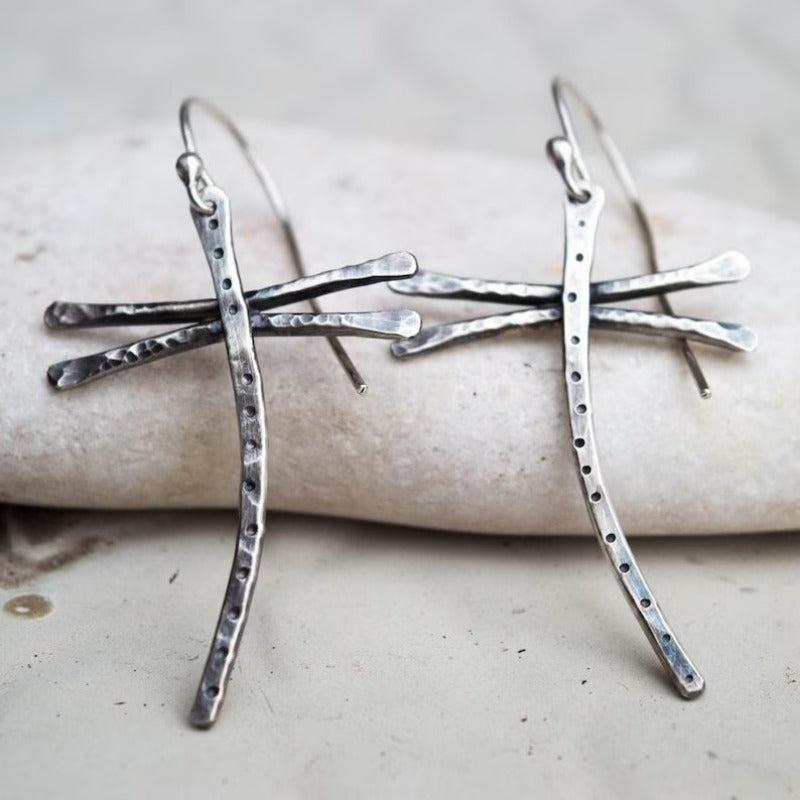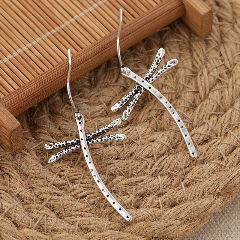 Vintage Boho Dragonfly Earrings Copper Insect Lover Jewelry