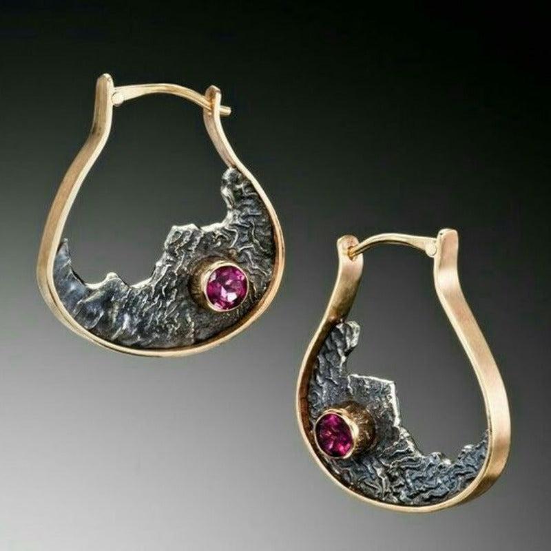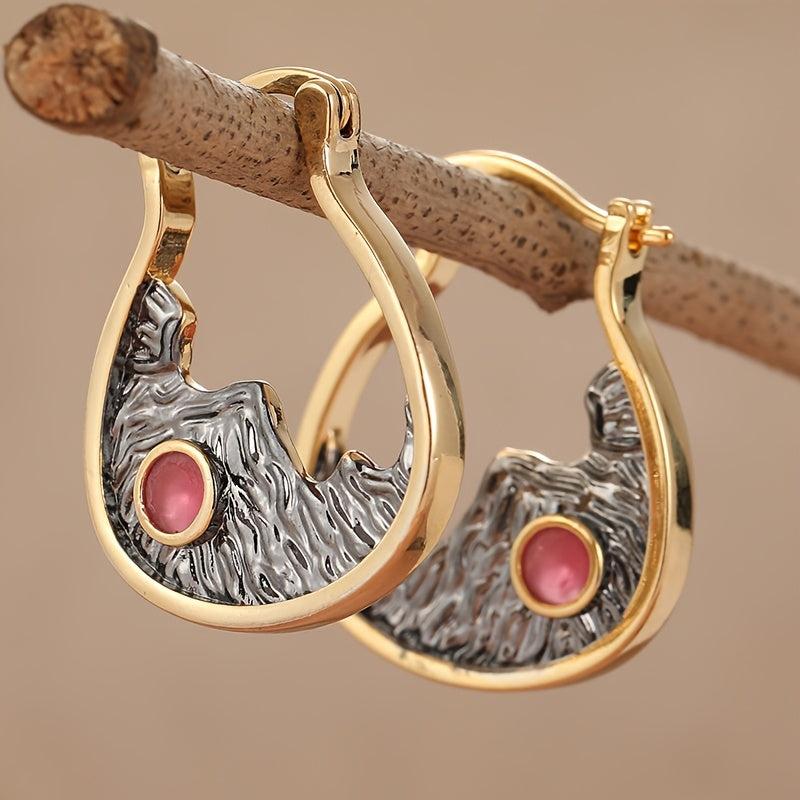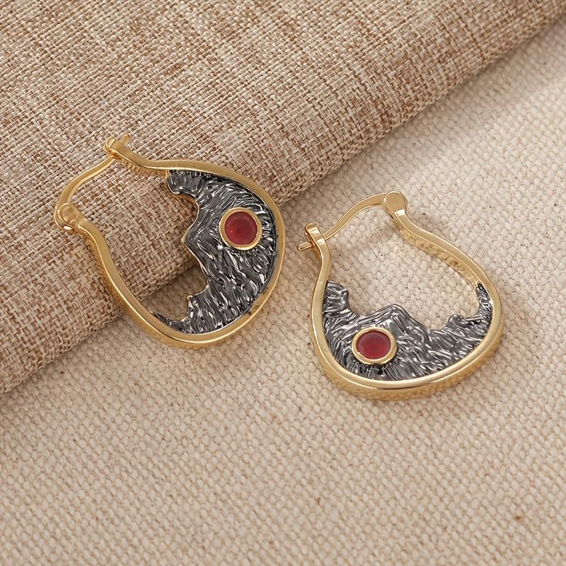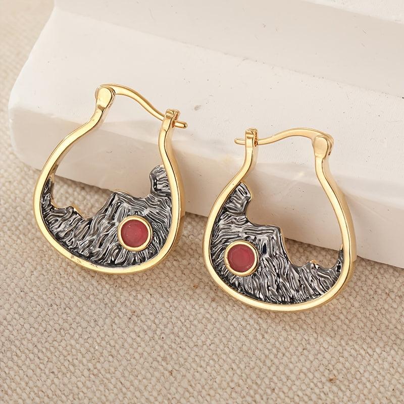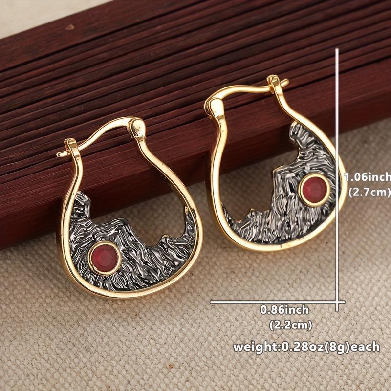 Beautiful vintage boho earrings with synthetic red zirconia inlay, handcrafted from 14K gold-plated copper. Perfect for daily wear or as a Christmas gift.