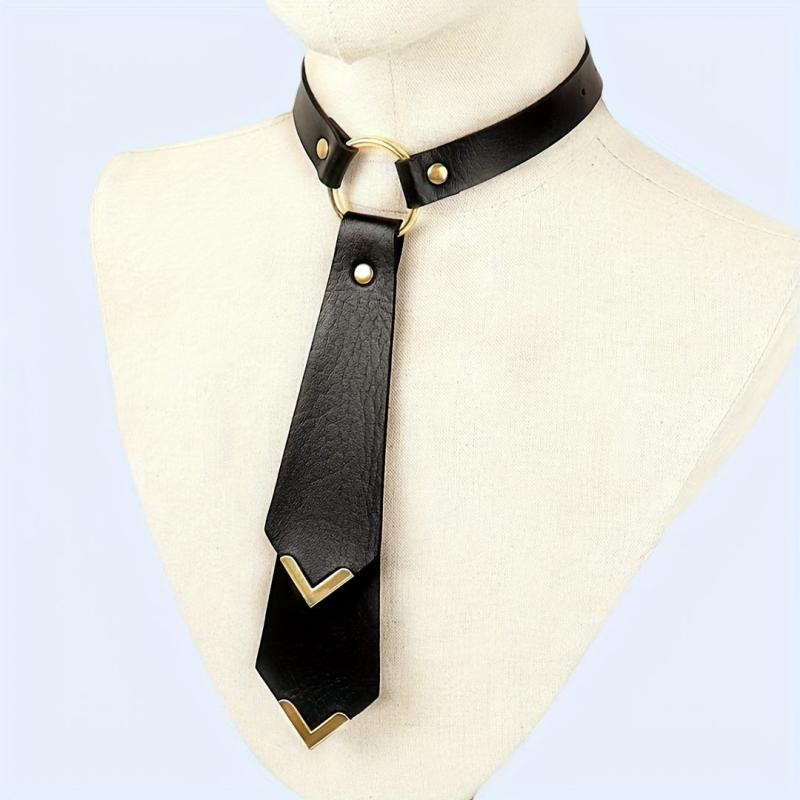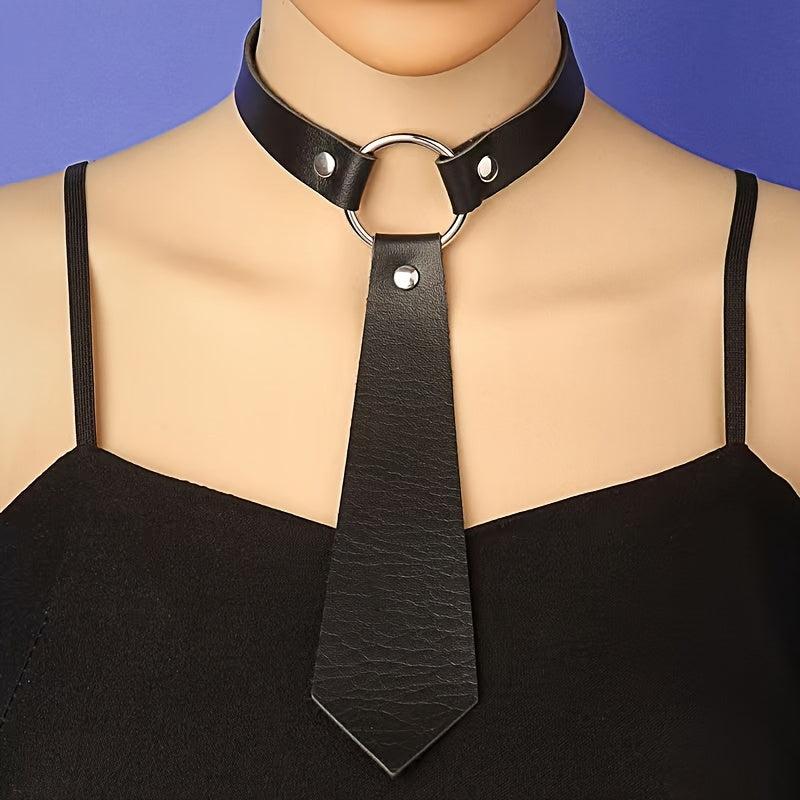 This choker necklace features a vintage boho design with faux leather material. It is adjustable and perfect for adding a punk or hip hop touch to your outfit.