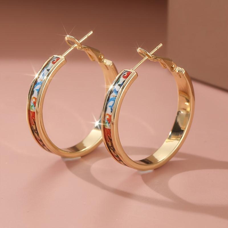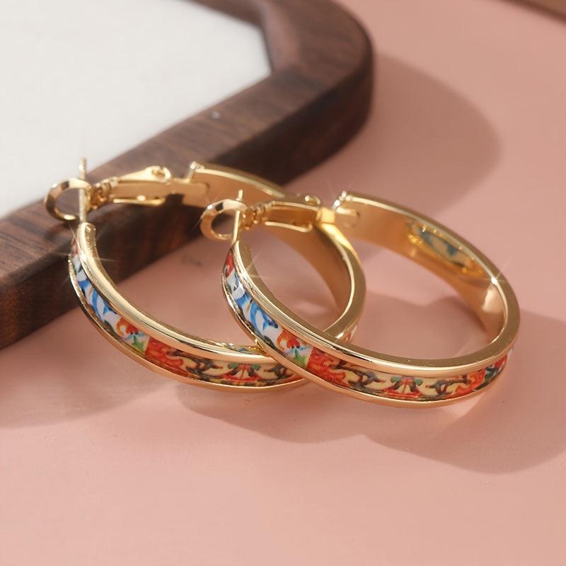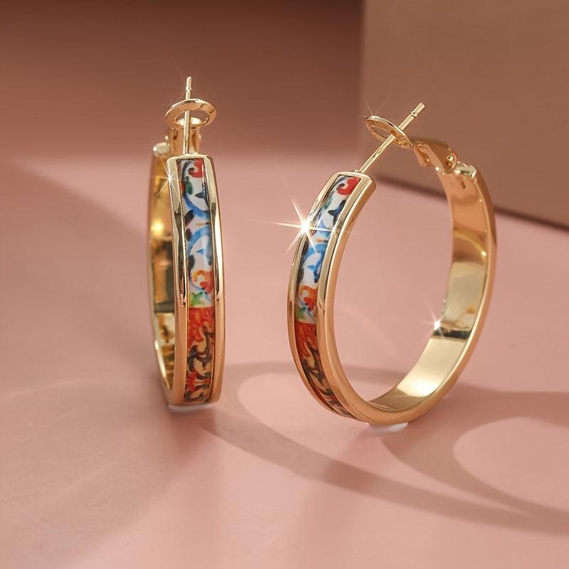 Add a touch of bohemian flair to your look with these vintage hoop earrings. Featuring 18K golden plated resin mosaic accents and antique copper ear hooks, these earrings exude charm and elegance.