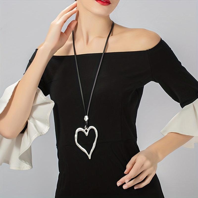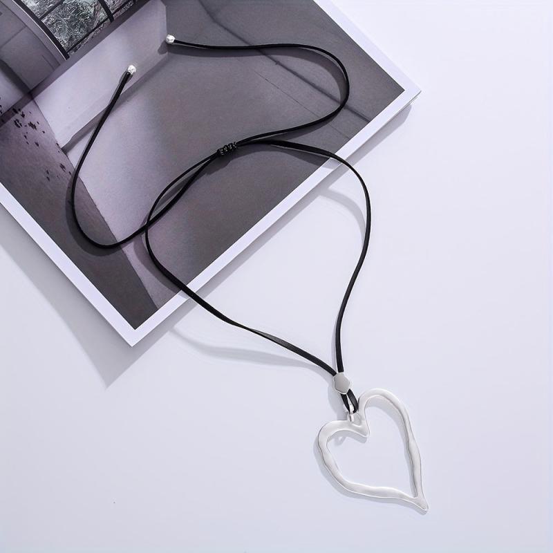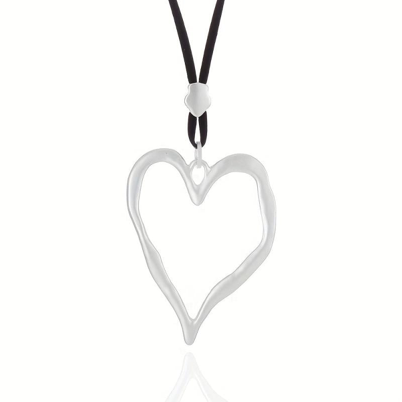 Add a touch of bohemian style with this vintage heart pendant necklace. The silver-plated pendant hangs from an adjustable faux leather rope, perfect for a unique look.