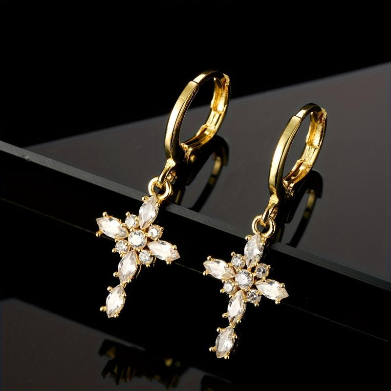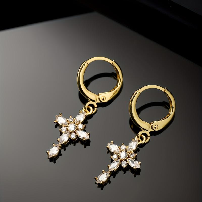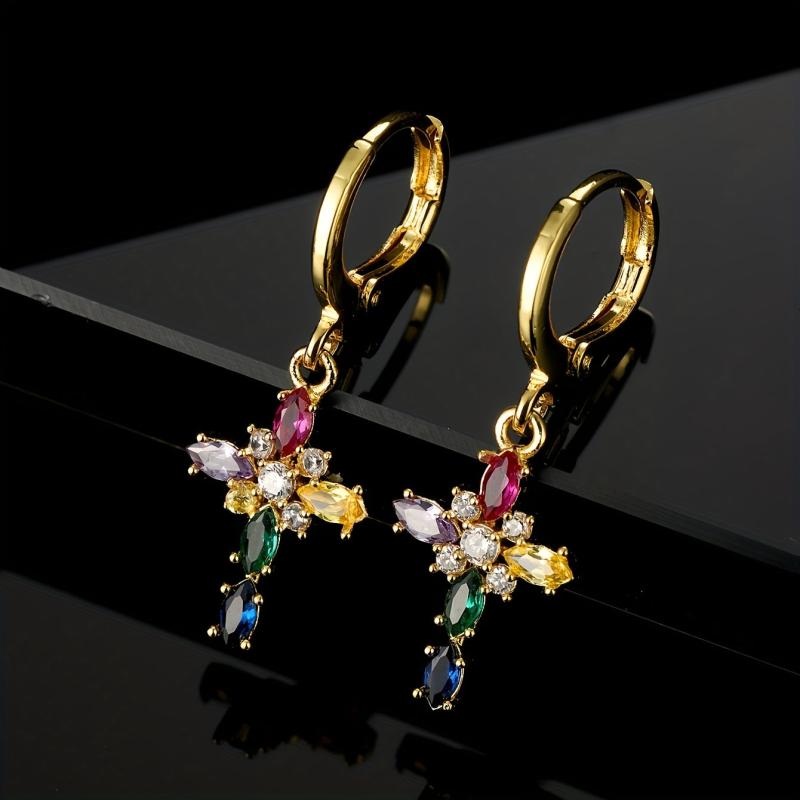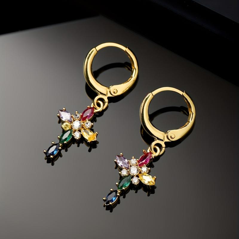 Elevate your style with these vintage boho earrings featuring a geometric cross design. Crafted from 14K gold plated copper with synthetic zirconia accents, these earrings are perfect for banquets or as a gift.