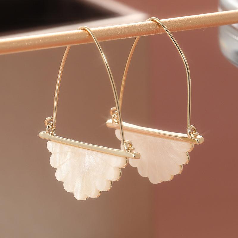 Vintage Boho Style Fan Drop Earrings 14K Golden Plated