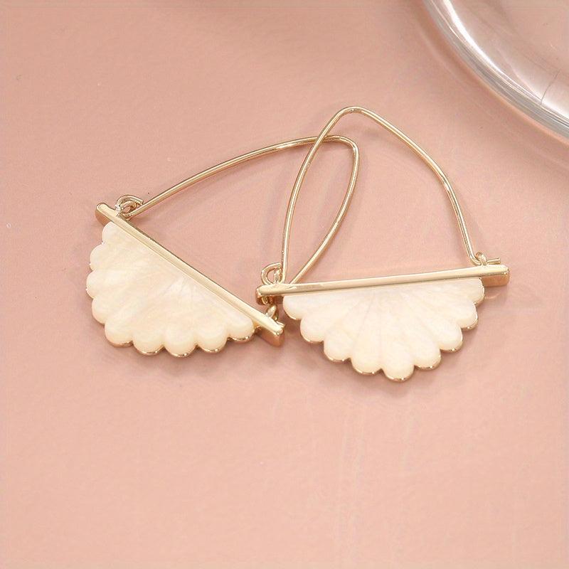 Make a statement with these elegant vintage boho style fan drop earrings. Perfect for weddings, bridesmaids, and daily wear, these 14K golden plated earrings add a touch of glamour to any outfit.