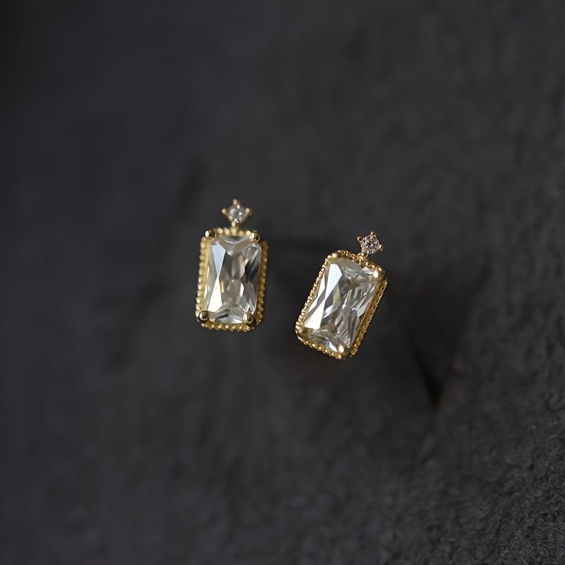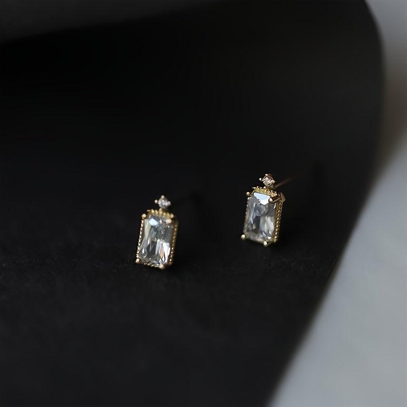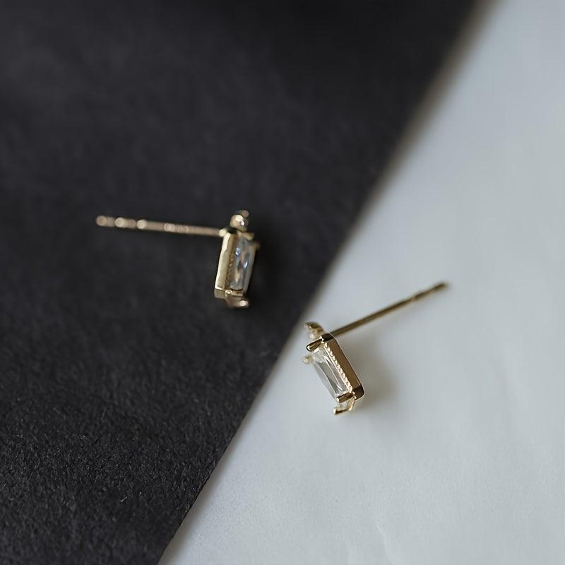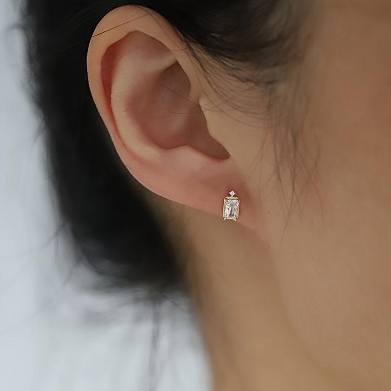 Mini square stud earrings made of delicate synthetic zirconia, perfect for wedding, birthday party, or daily wear.