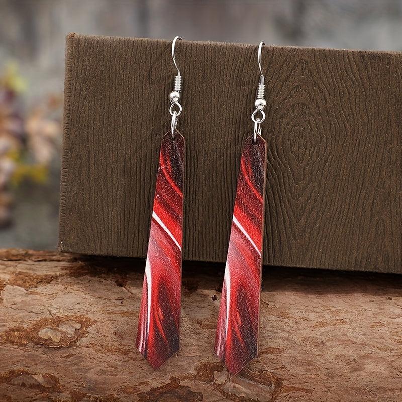 These vintage bohemian style long wooden earrings with iron hooks are perfect for casual attire. The abstract design adds a unique touch to your look.