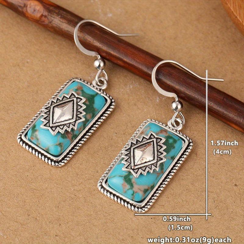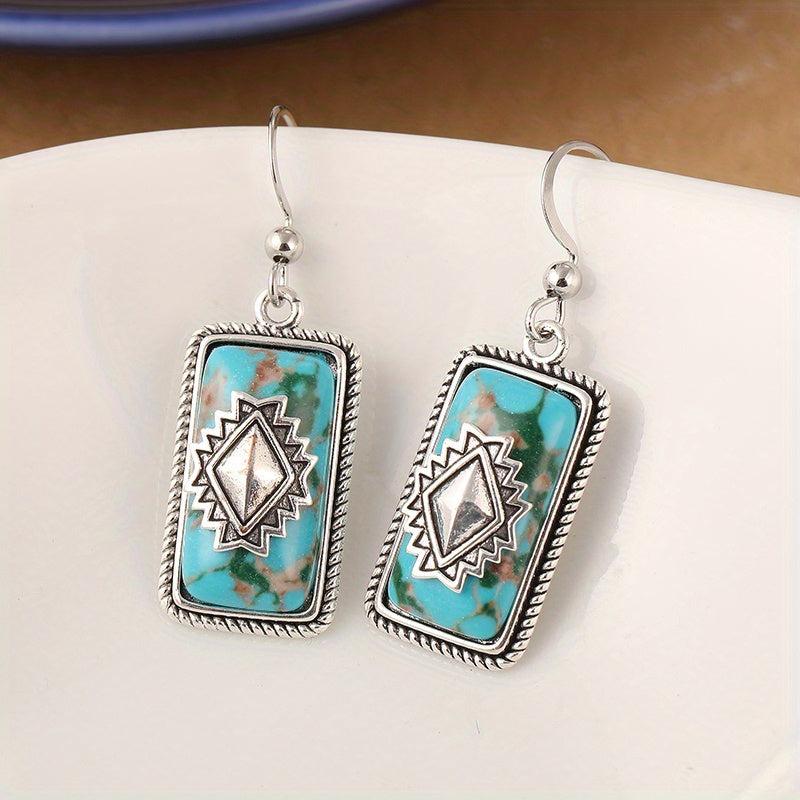 Add a touch of vintage boho charm to your look with these turquoise dangle hoop earrings. Made with copper material and an infinity band design, perfect for special occasions or everyday wear.