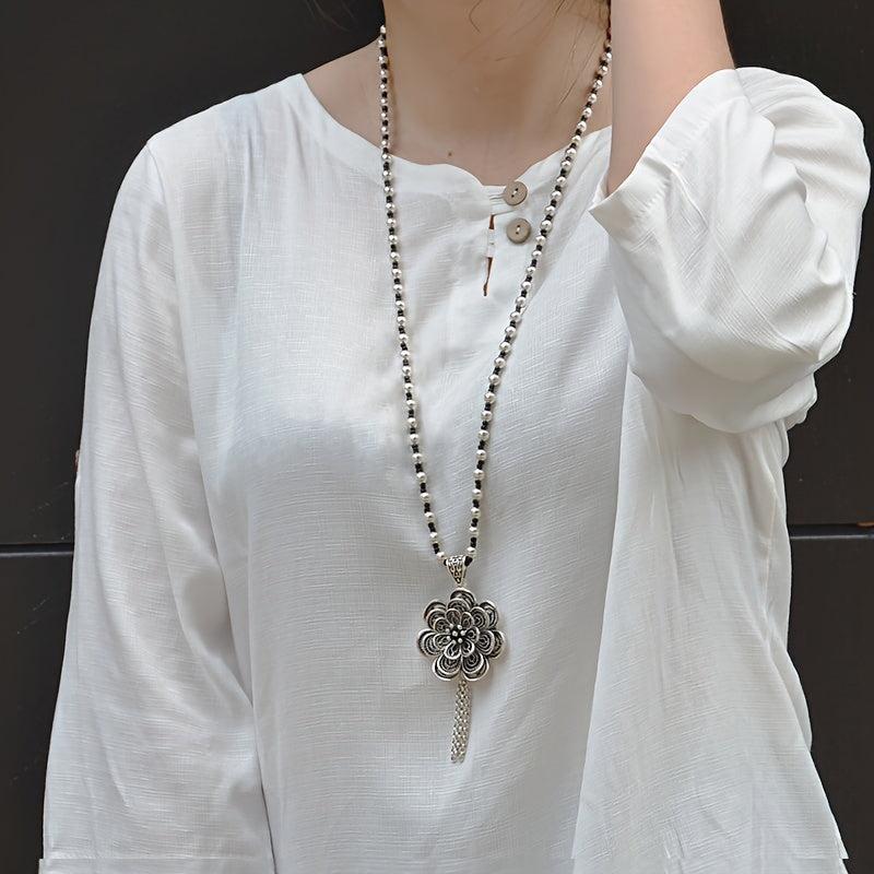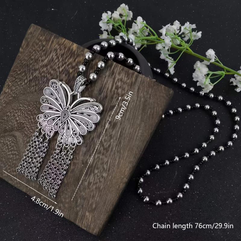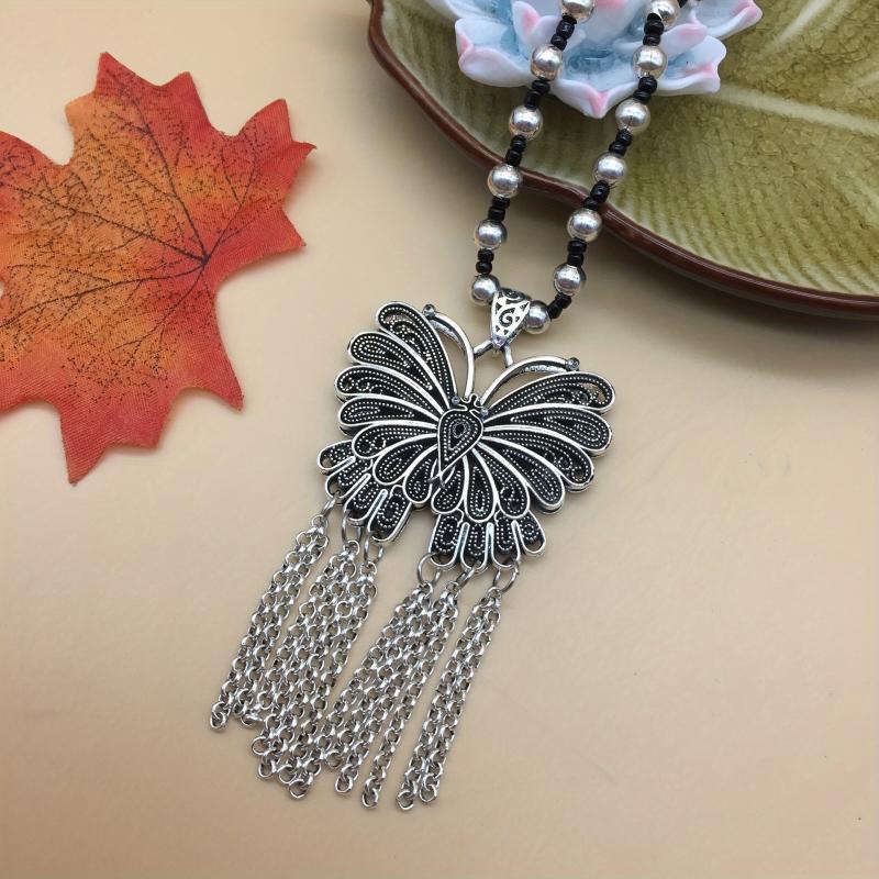 Elevate your style with this multifunctional zinc alloy necklace. Perfect for daily wear or as a gift, this tassel pendant adds a vintage boho touch to any outfit. Suitable for all seasons.