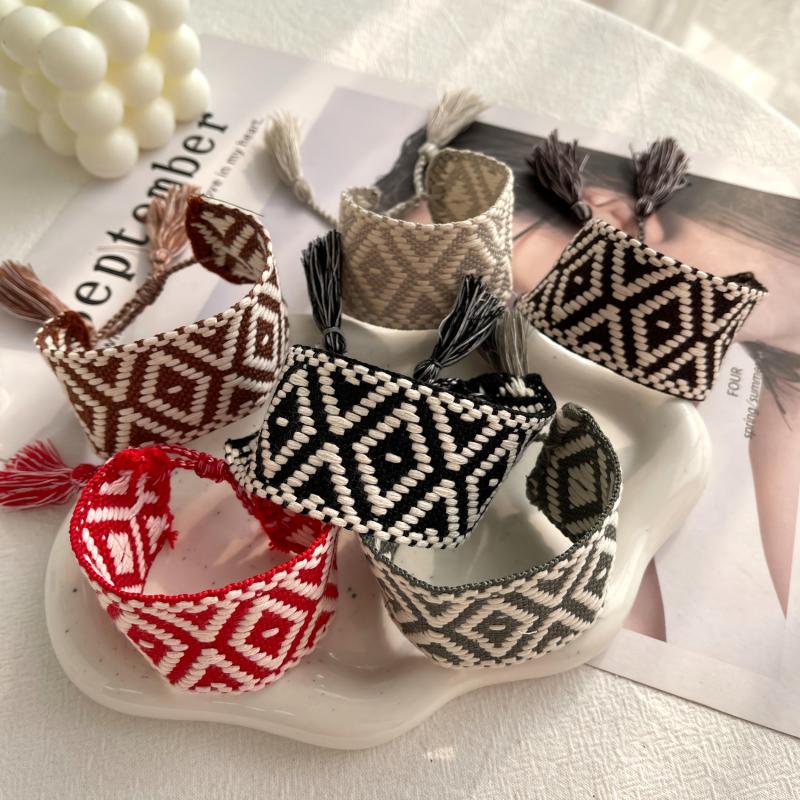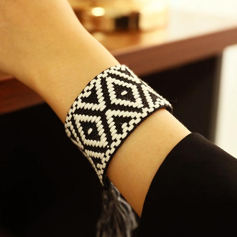 Add a touch of vintage charm to your look with this wide tassel bracelet featuring a diamond pattern design. Made from high-quality polyester, this bracelet is perfect for everyday wear or special occasions.