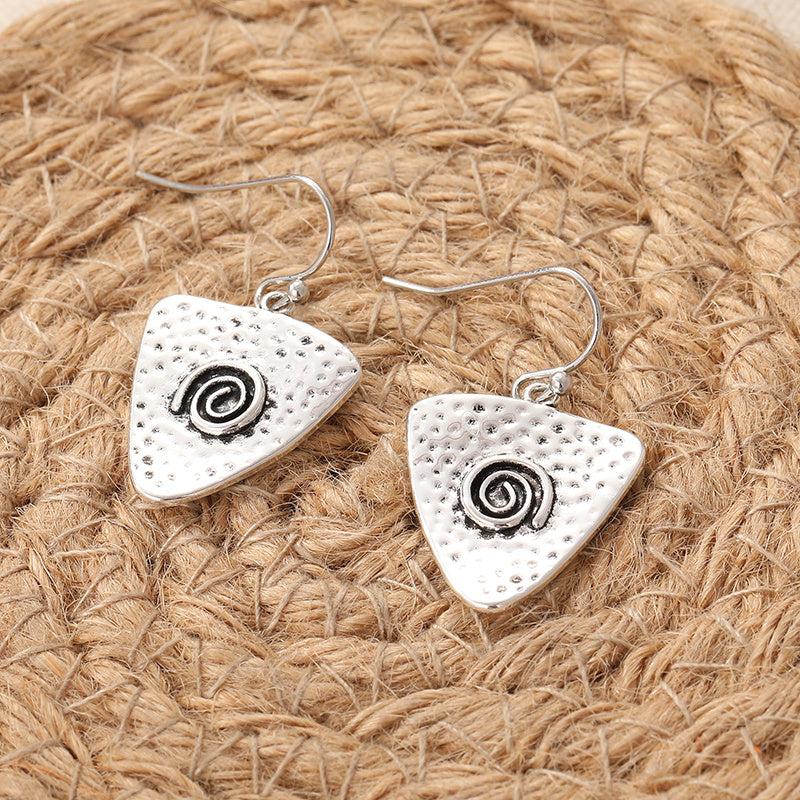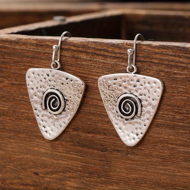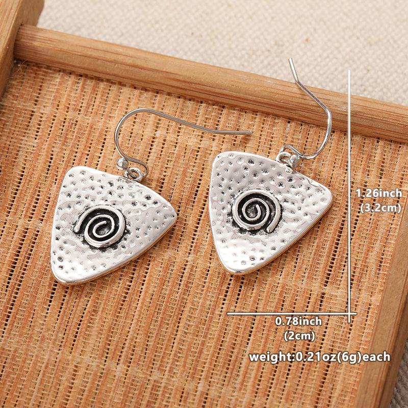 These vintage bohemian triangle earrings feature a spiral design and are made of durable copper plated metal. Perfect for parties and vacations, they make a great gift for mothers and can be worn in all seasons.