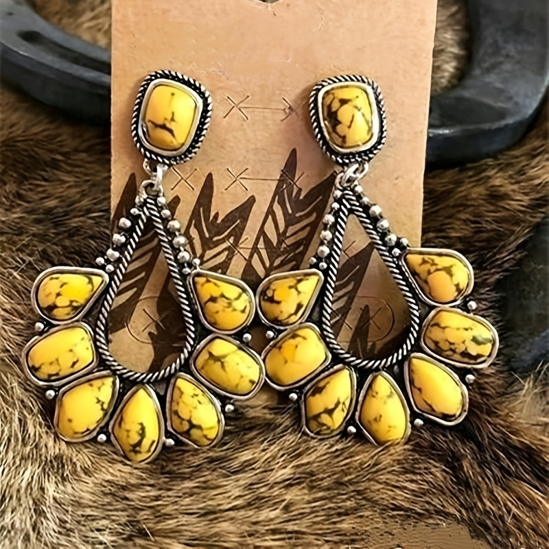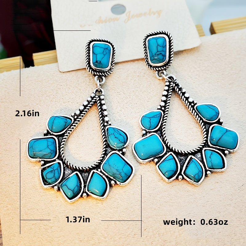 Add a pop of color to your outfit with these vibrant turquoise drop dangle earrings. Made with 925 silver plating, these earrings are perfect for boho style lovers.