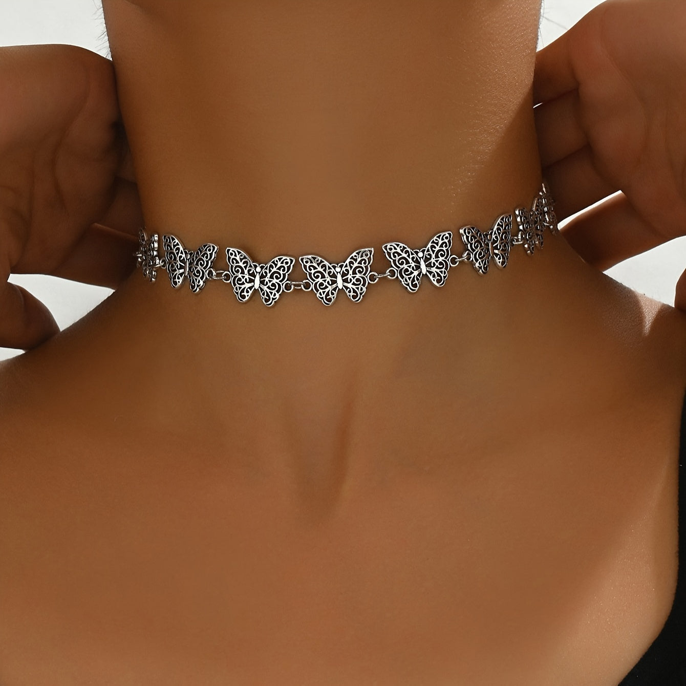 Add a touch of vintage elegance to your look with this stunning butterfly choker necklace. Perfect for any occasion.