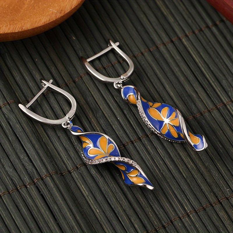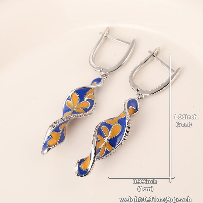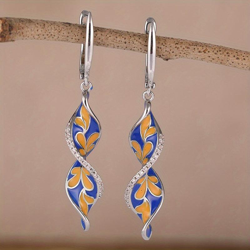 Elegant and stylish, these vintage charm earrings feature a spiral leaf design with enamel cloisonne flower accents. Plated with copper and adorned with sparkling synthetic zirconia, they are perfect for any occasion.