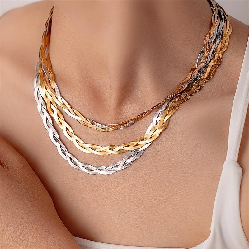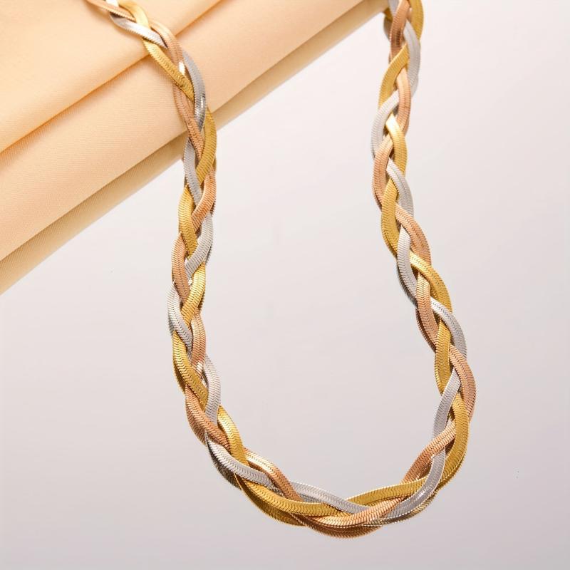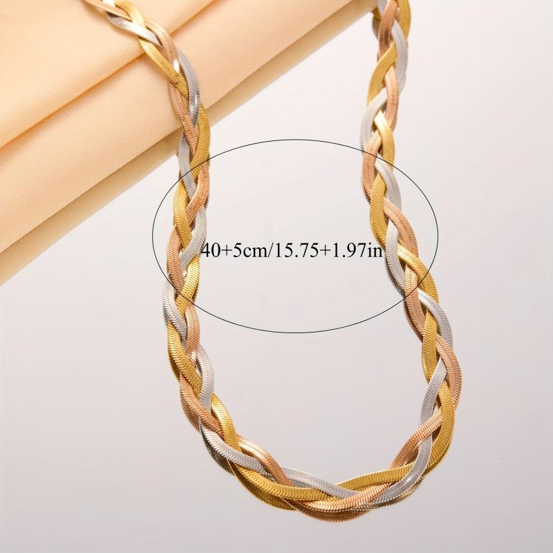 Classic and elegant, this tri twisted rope chain necklace is crafted from 316L stainless steel with a golden tone finish. Perfect for daily wear, this clavicle jewelry is suitable for men and women.