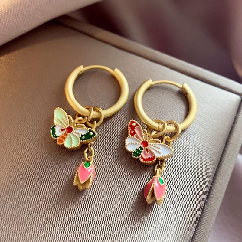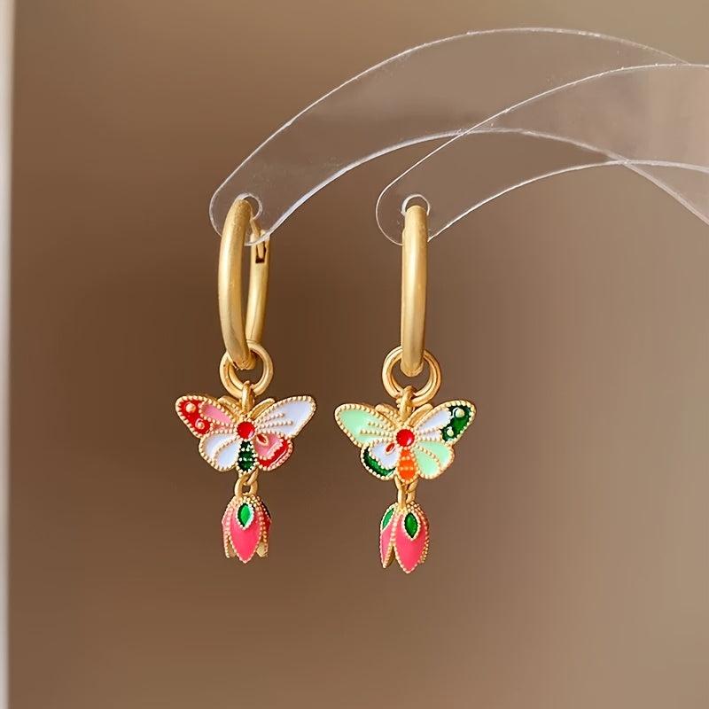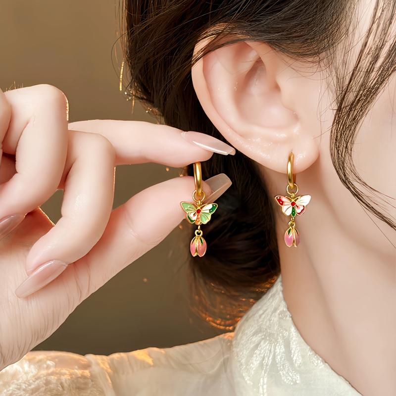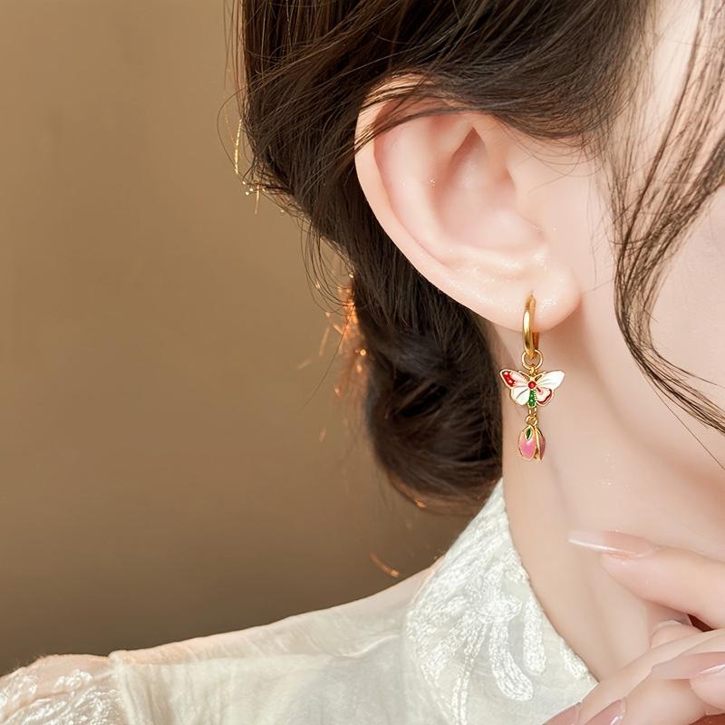 Add a touch of elegance to your daily wear with these vintage Chinese style tulip butterfly earrings. Made from zinc alloy with copper posts, these dangle earrings are perfect for gift giving and holiday themed occasions.