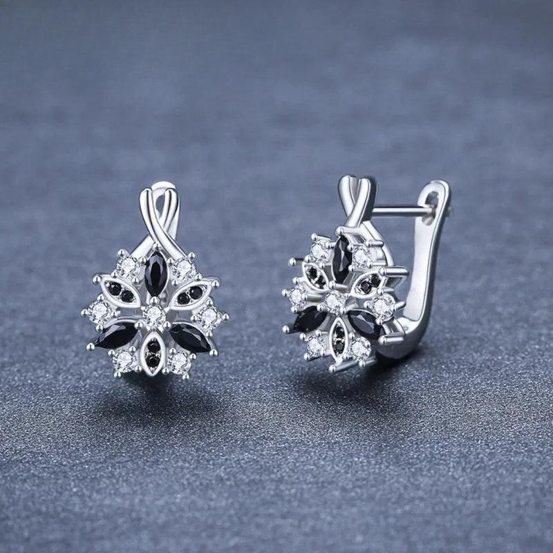 These stylish copper flower earrings are nickel plated and feature synthetic and zirconia accents. Perfect for daily wear or as a thoughtful gift.